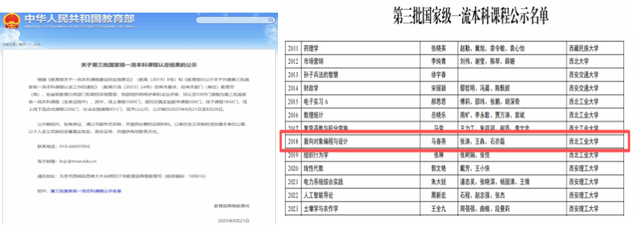 此次《面向对象编程与设计》课程成功入选国家级一流本科课程,是学院长期以来坚持高质量课程建设与深化教育教学改革的重要成果。学院始终将人才培养作为立院之本,致力于打造优质教学资源品牌,通过系统规划与创新实践,持续推进课程建设与教育教学质量提升。未来,学院将充分发挥一流课程的示范引领作用,加快推进数智化教学资源建设,构建多类型、多样化的教学内容与课程体系,为“总师型”人才培养提供坚实的教学资源支撑。