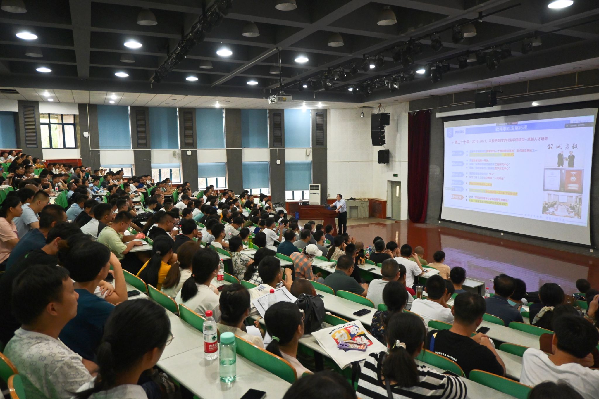 于教学西楼A100报告厅召开2024级本科新生家长见面会。学院院长郑江滨,副院长马春燕,本科生教学秘书蔡康英,学院办公室主任王宇英,2024级新生辅导员、班主任梁旭,2024级新生班主任、教授代表董云卫,2024级新生班主任王犇,2024级新生辅导员张蒙出席会议。本次家长会采用线上线下相结合的方式,共有300余名新生家长参会。会议由学院党委副书记陈博主持。