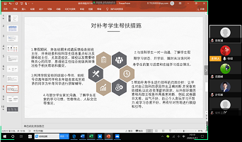 会议伊始,张琨传达了杨益新、张开富、万小朋等校级领导人对各教学单位、全体教师、相关部门在全力保障在线教学工作的具体要求,提醒各年级辅导员继续加强与教学的工作协同,加强对学习困难学生、大四毕业生毕业情况的摸排,梳理补考学生情况,进一步细化、落实学生补考工作,做好学生困难学生帮扶、重点学生管理、就业考研指导等各项工作。