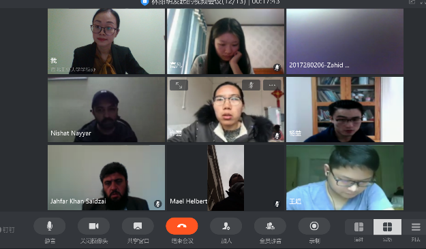 3月2日下午16:00,在学院召开的留学生毕业视频答辩说明会上,分别身处法国、阿富汗、巴基斯坦、长安校区的6位留学生,通过钉钉视频和学院研究生教学秘书、外事秘书及志愿者们相见。在近2小时的说明会上,研究生教学秘书林老师首先介绍了从学位申请到学位授予的各个环节需要完成的工作,然后介绍视频答辩的具体流程及注意事项,对于留学生提出的问题和担心也一一作答。说明结束后大家进行了一次视频答辩模拟演练。最后,林老师感谢志愿者们的辛勤付出,并预祝大家视频答辩顺利通过。留学生们也对学院举行的这次活动纷纷表示感谢。