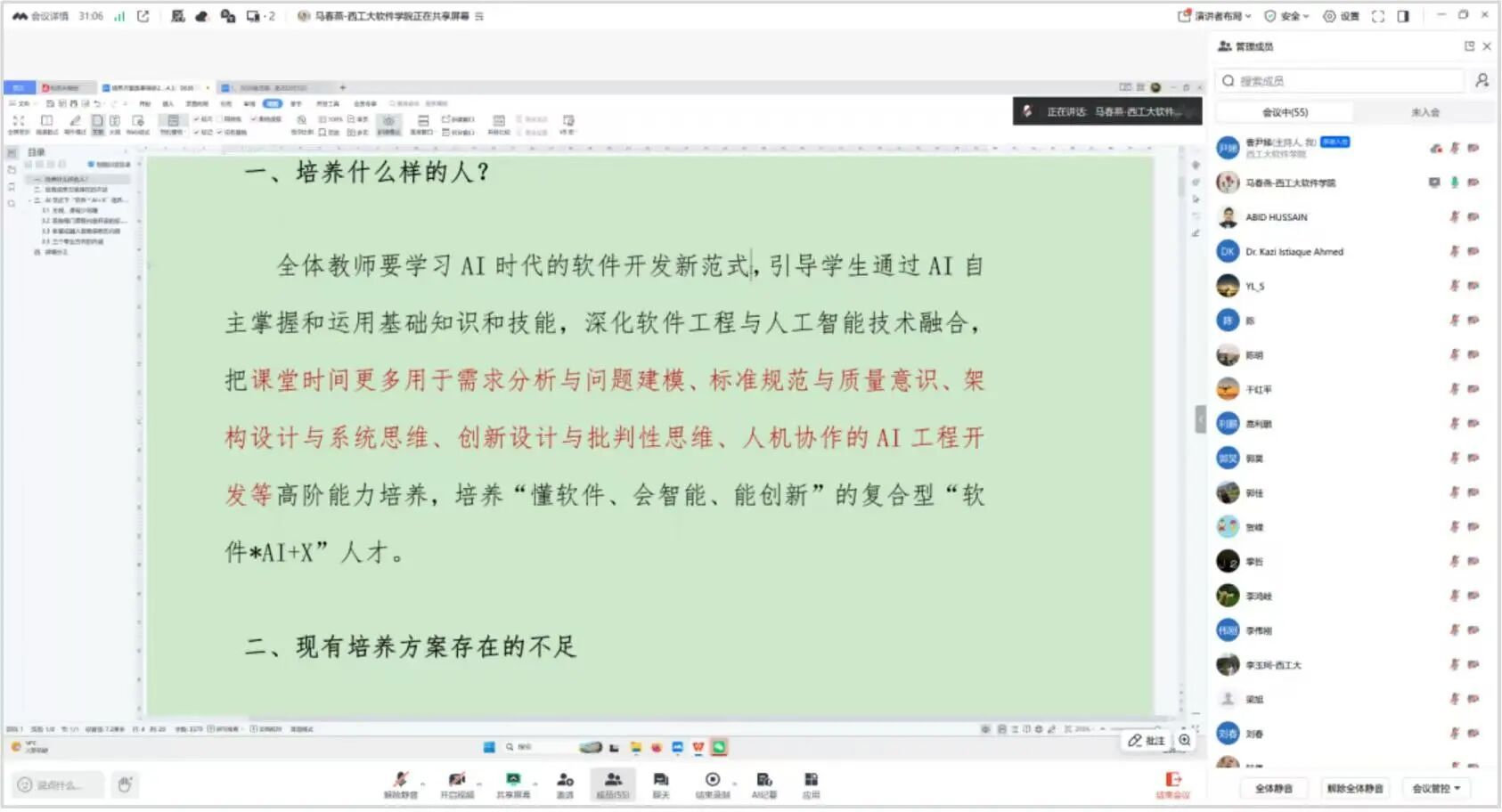 统一思想 凝聚共识 全力应对AI时代的挑战 少妇做爱 召开“软件*AI+X”本科培养方案修订和课程重塑启动会