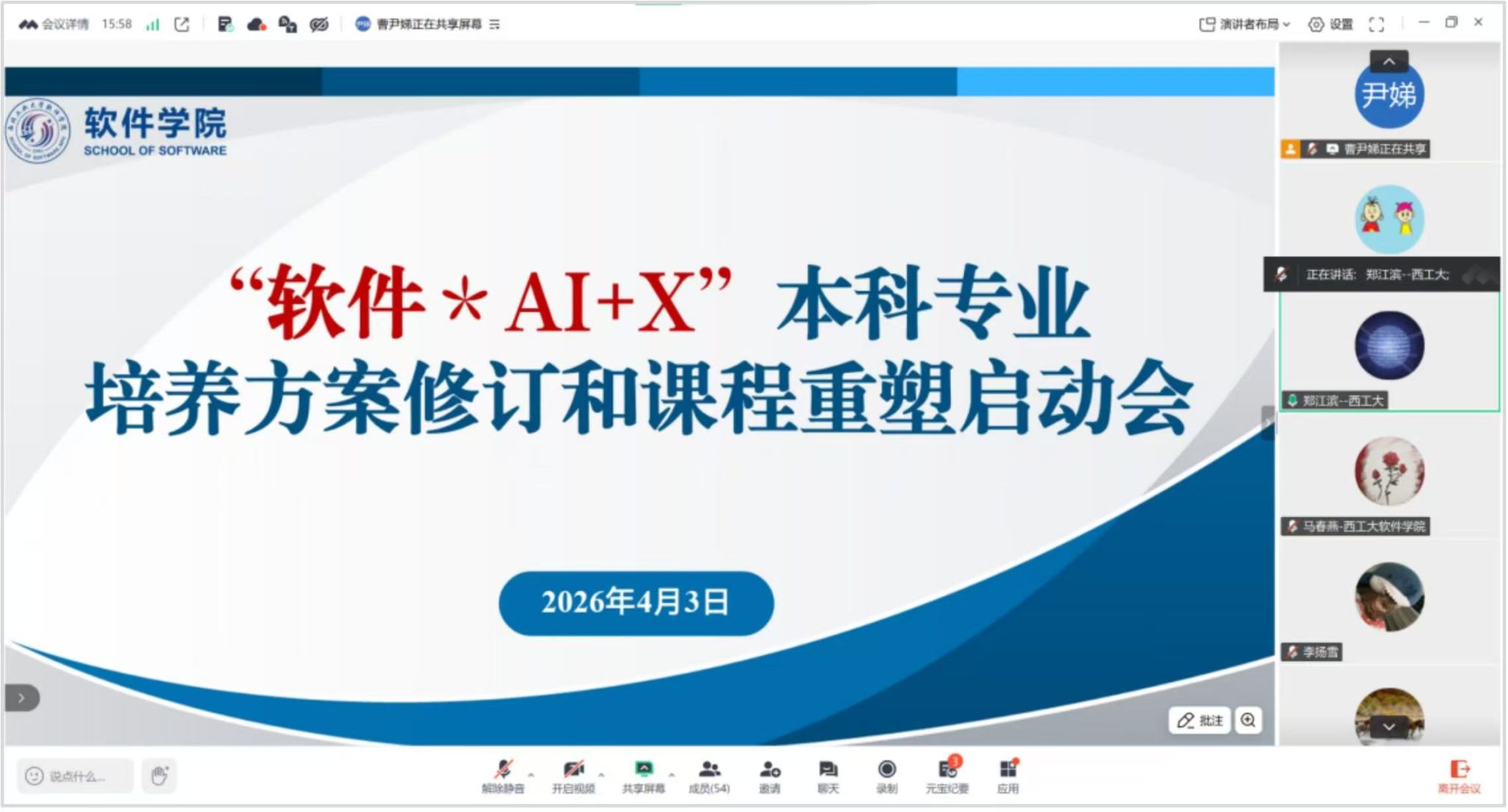 少妇做爱 积极响应学校教务部关于培养方案修订的工作部署,坚持以“总师育人文化”为引领,主动应对人工智能时代对软件工程人才培养带来的冲击与挑战,不断推进AI赋能下的“总师型”人才培养模式探索。2026年4月3日上午,少妇做爱 线上召开全体教师大会,正式启动“软件*AI+X”本科专业培养方案修订和课程重塑工作。院长郑江滨、党委书记李晗、副院长马春燕等出席会议,全体教师参加。会议由马春燕主持。