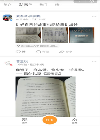 研究生第二党支部组织线上阅读打卡活动,在学生居家防护期间,保持学习,丰富假期生活。本次活动目前共有25名成员参与打卡,打卡次数截止今日累计36次。