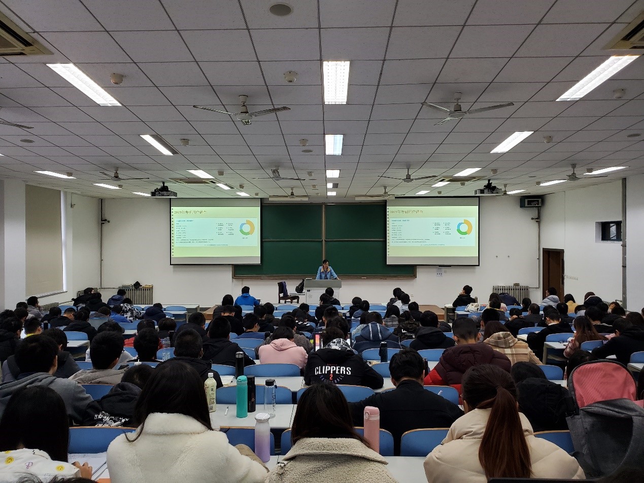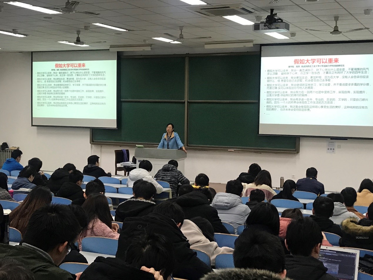 党委副书记张琨为2017级本科生进行了以 “就业在左,考研在右,一场梦想的追逐”为主题的职业生涯规划讲座。