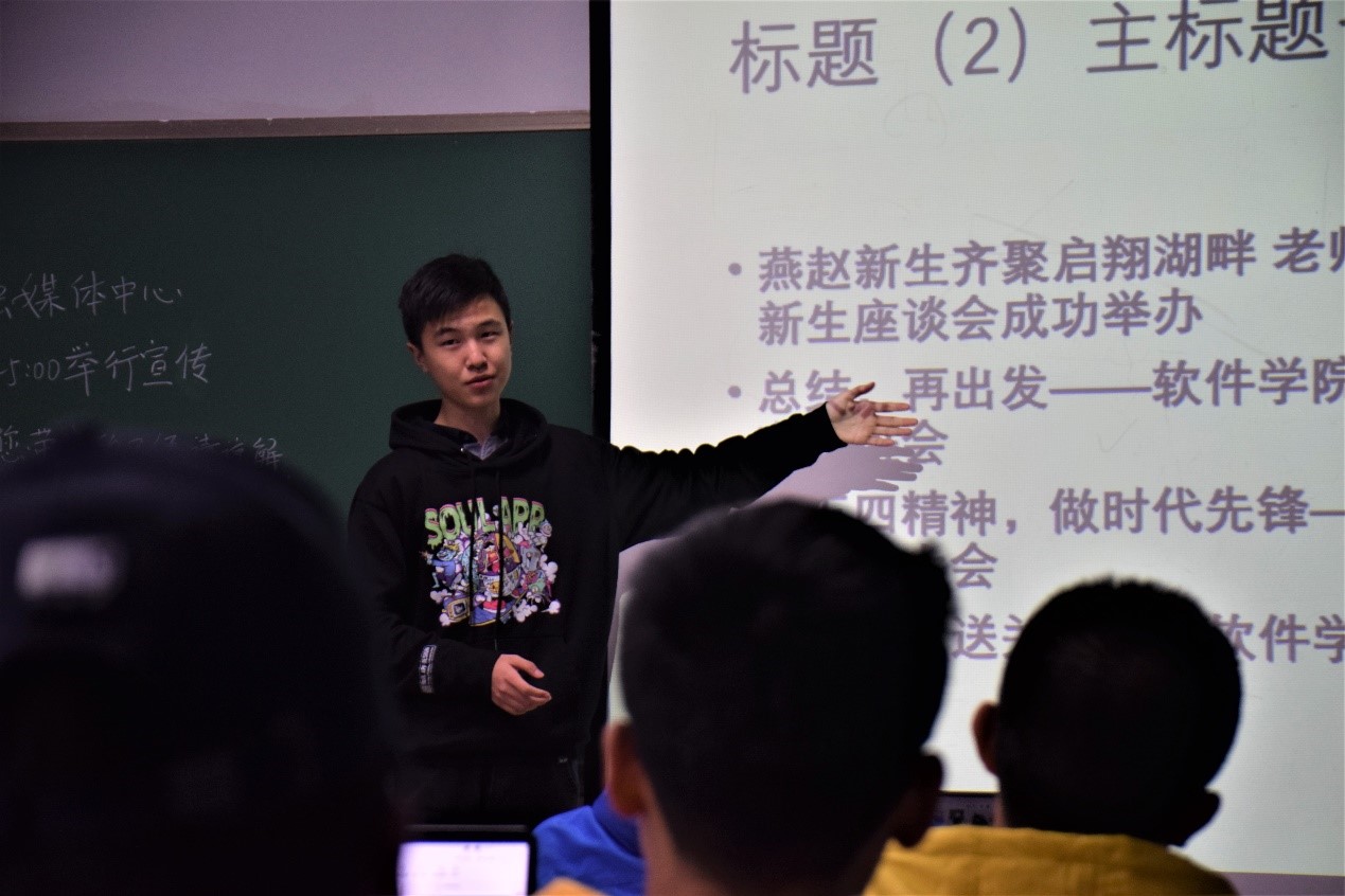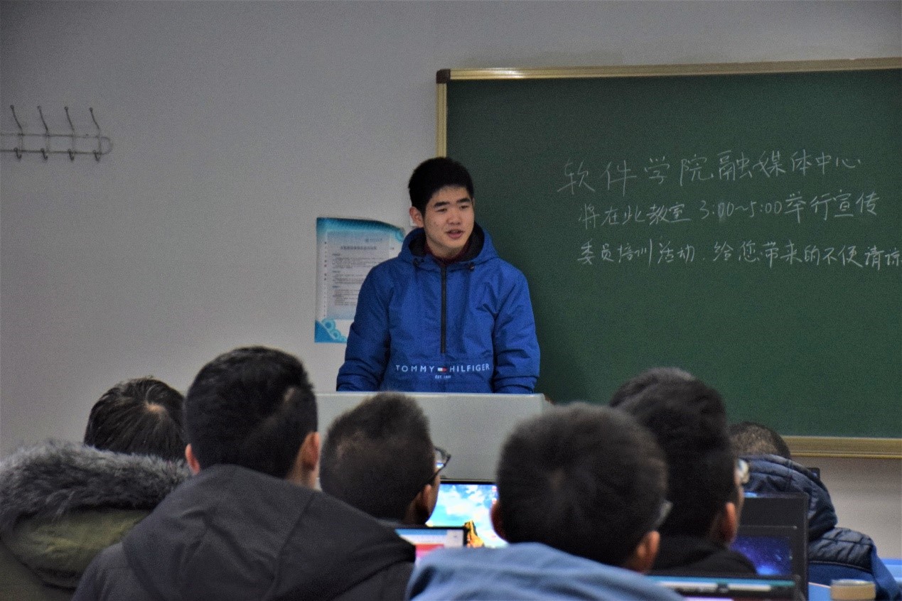 解雨辰学长为各班宣传委员详细介绍了微信推文的制作流程,作为学院微信公众号运营团队的主要成员,他凭借自己丰富的微信推文制作经验,从微信编辑器与微信内容的选取两个部分着手,并就如何进行图文排版,如何加logo和工作人员,如何将图文复制到微信公众号这几个部分进行了具体的讲解,让所有宣传委员对微信的制作与运营有了更加细致的了解。
