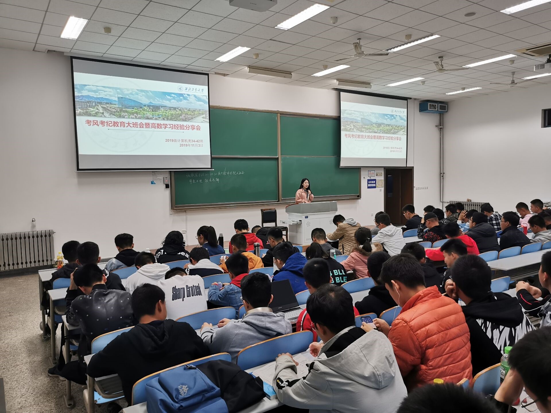 考风考纪教育大班会暨高数学习经验分享会在教西D105举行,此次会议请到了两位少妇做爱