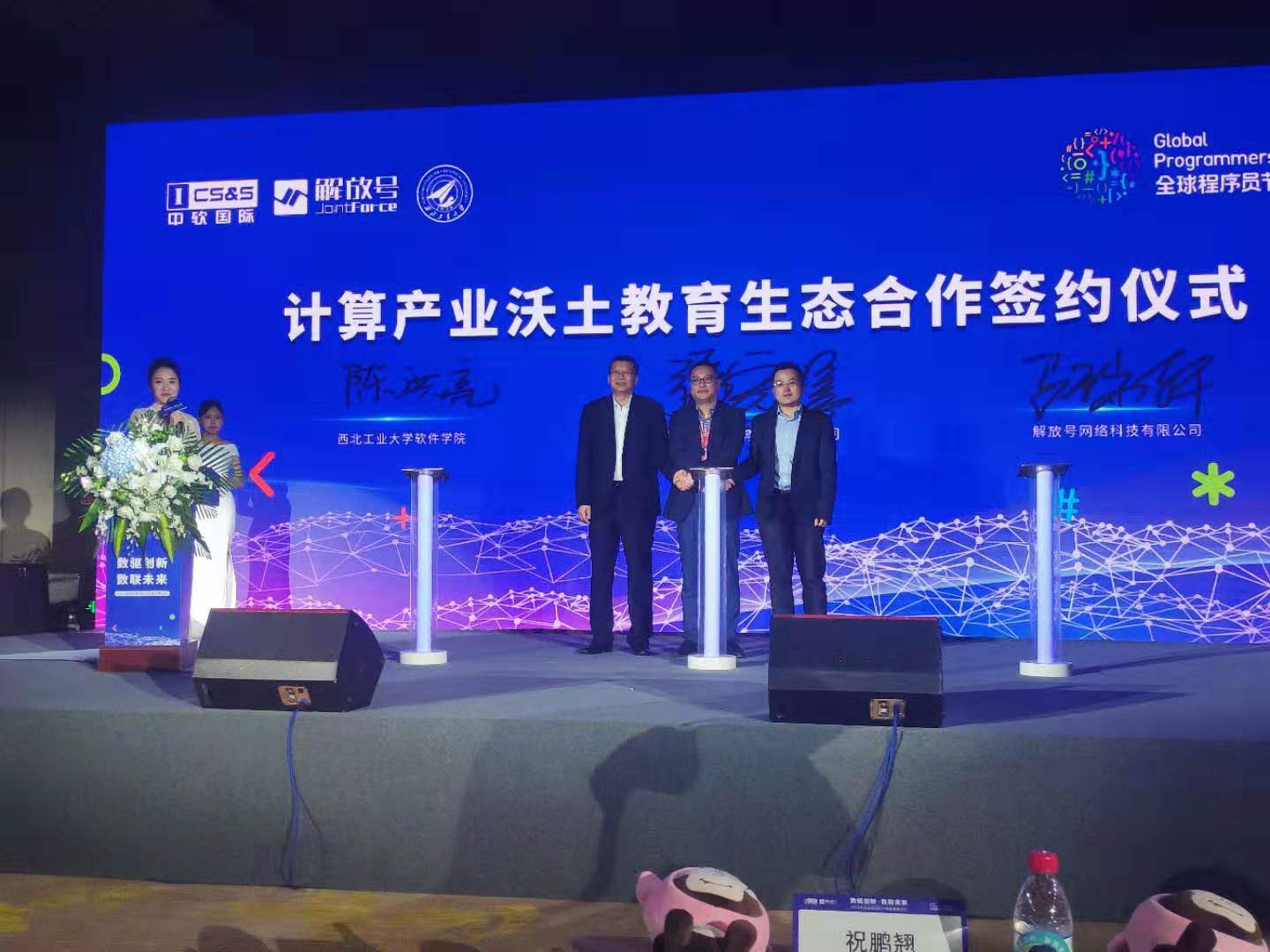 作为签约单位参与了重点项目签约仪式,同中软国际教育科技有限公司签署了《计算产业沃土教育生态合作协议》,同西安软件园签署了战略合作协议,为进一步推动校企合作联合开展软件人才培养打下良好基础。
