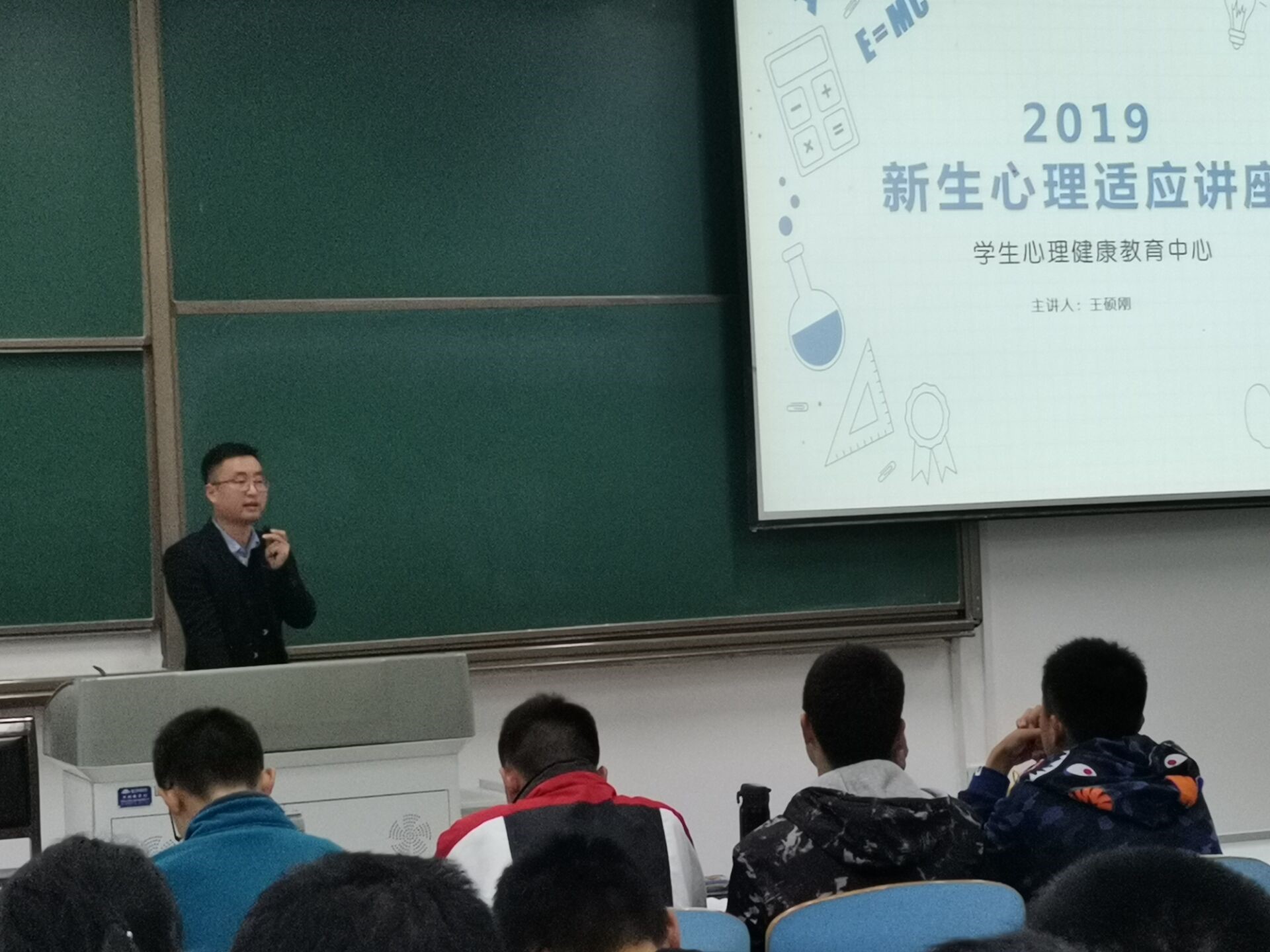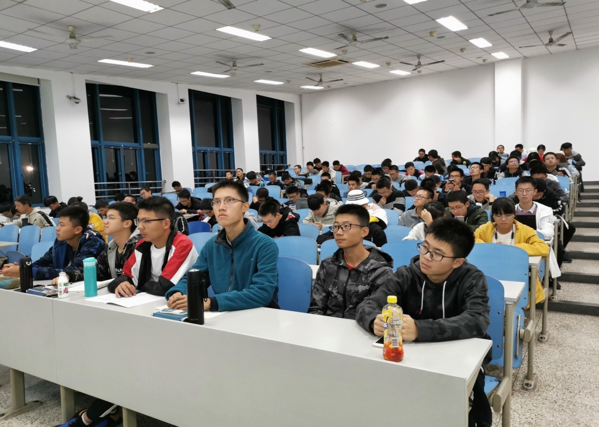 资深辅导员兼优秀班主任王硕刚老师,出席此次讲座的还有2019级辅导员李祖鑫老师及34-42班全体同学。