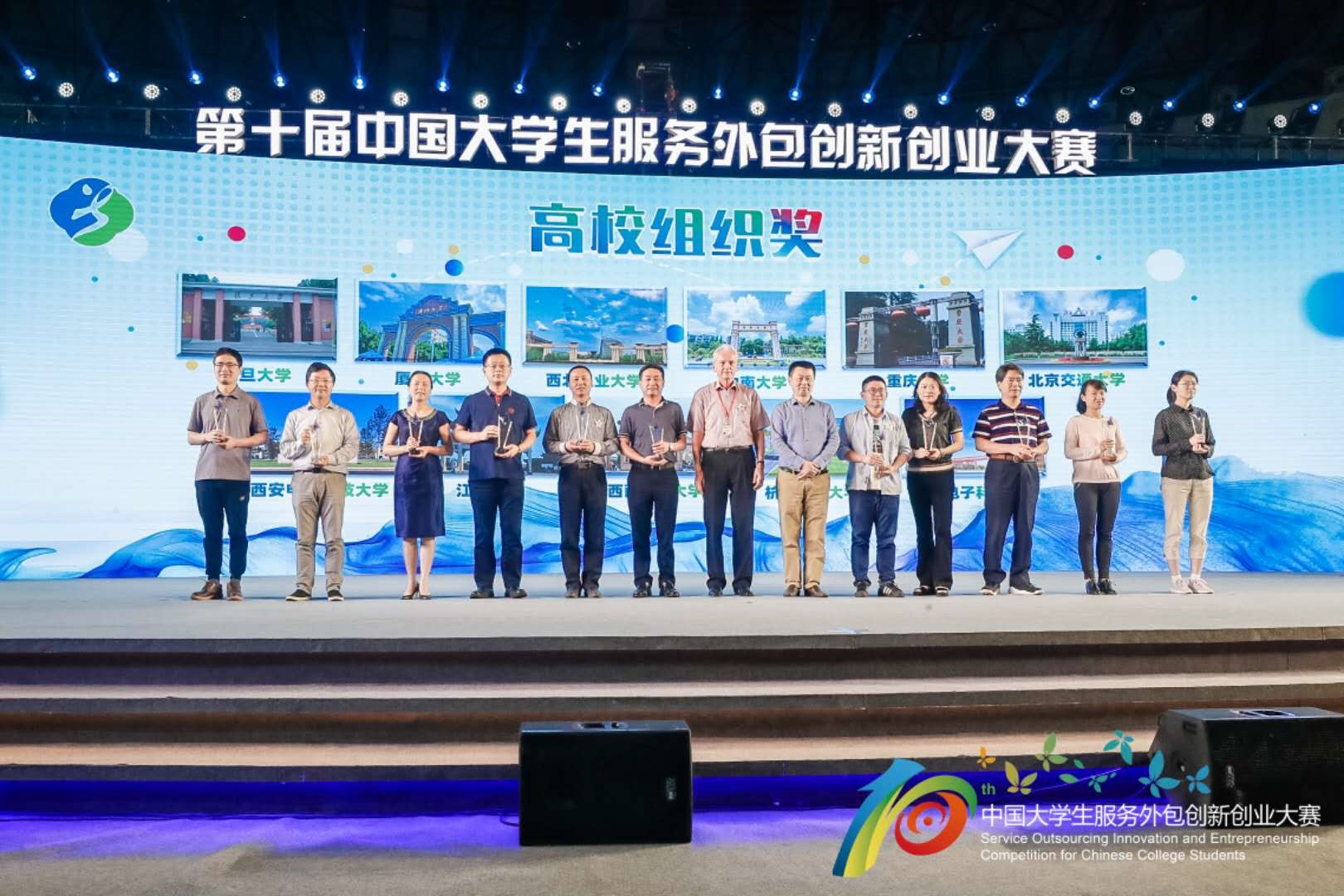 X”团队,在江苏无锡举行的第十届中国大学生服务外包创新创业大赛决赛中,获得企业命题类一等奖,这是我校连续两年在该赛事中获得一等奖。正值服务外包大赛十周年,大赛组委会特设“高校组织奖”,表彰在服务外包大赛中表现突出的全国十所高校,我校凭借历年来在比赛中的优异表现,获此殊荣。