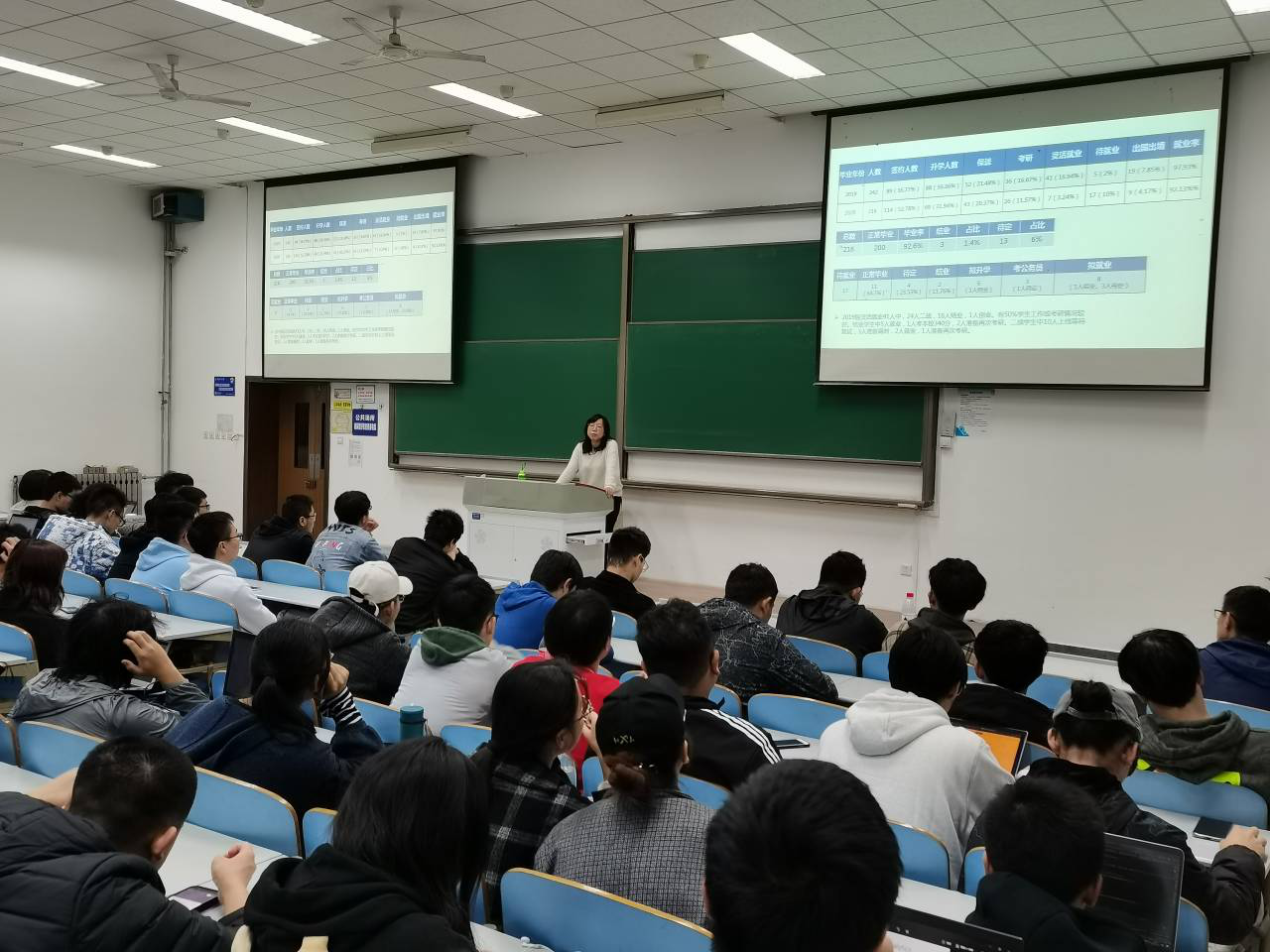 党委副书记张琨为2018级本科生进行了以“就业在左,考研在右,一场梦想的追逐”为主题的职业生涯规划讲座。