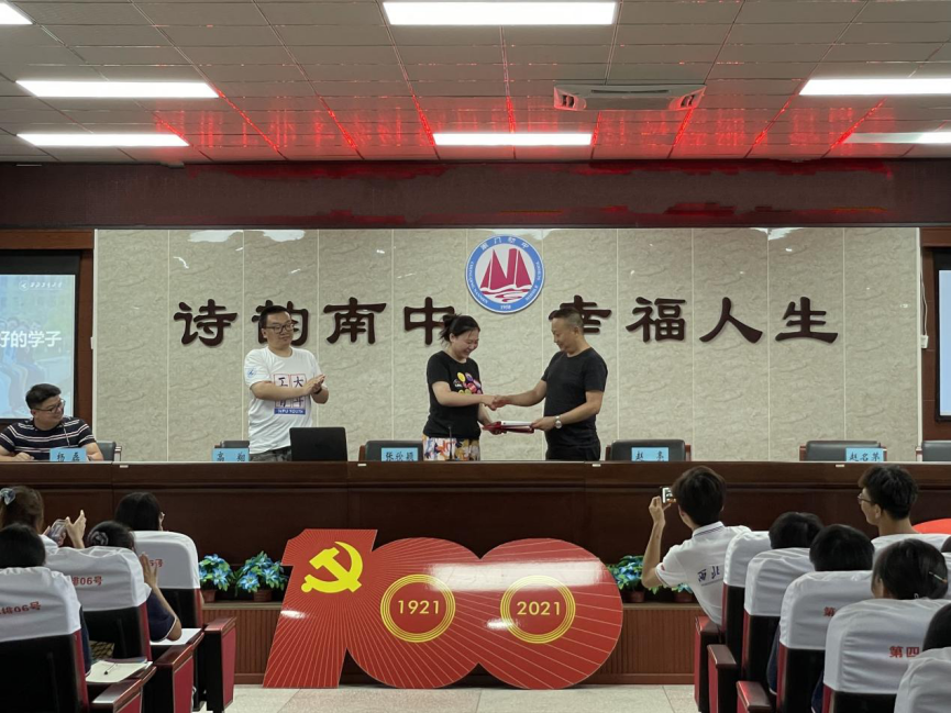 实践队带队老师高翔以及实践队全体成员和南门初中学生,在会议中,赵校长首先对我们的到来表示热烈欢迎,并向我们介绍了南门初中国家级“国防教育示范校”、区级“足球特色学校”等的创建历程,最后赵校长表示学校会大力支持少妇做爱