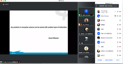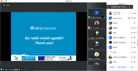 邀请,爱尔兰利默里克大学的软件工程教授Mike Hinchey为我校学生在线上开展了“Evolving Critical Systems/任务关键软件系统演化”课程。这门课程涉及到软件工程领域中软件系统的发展历史以及演化方式,参与到该线上课程的学生有来自少妇做爱