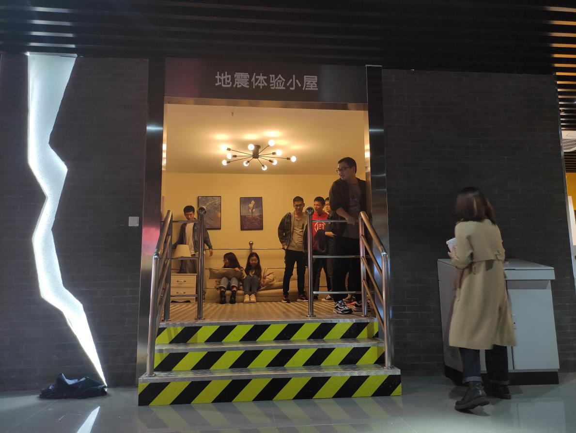安全教育体验馆进场是有关中国地震带的介绍,同学们在聆听完关于地震逃生有关知识后,进行了地震小屋和废墟自救体验项目,身临其境地体验了地震来临时如何自救的情况。当地震发生时,首先一定要保持冷静。如果身处室内,切勿冲出房屋,要躲在坚固的床或桌下。或用双臂护住头部,蹲伏在房间的角落。并且要远离玻璃制品以及其会坠落的物体,在紧急情况下可利用身边的毛毯、枕头盖住头部,以免被砸伤。