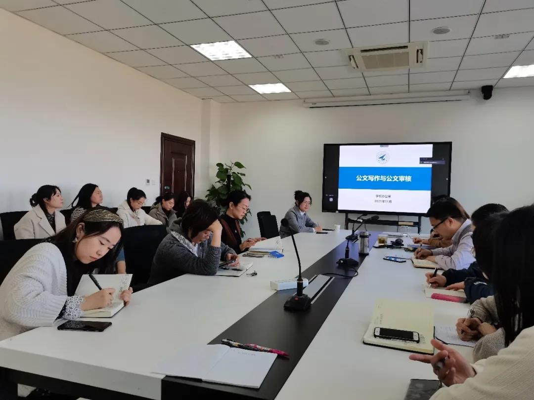 办公室组织开展《公文写作与公文审核》专题培训会。本次培训会特邀学校办公室文秘政研科尹红菊老师担任主讲,学院办公室主任王宇英主持,副院长郭培荣及学院本科教学办公室、研究生教学办公室、科研办公室、学生工作办公室和实验室管理的相关教职工参加了本次培训。