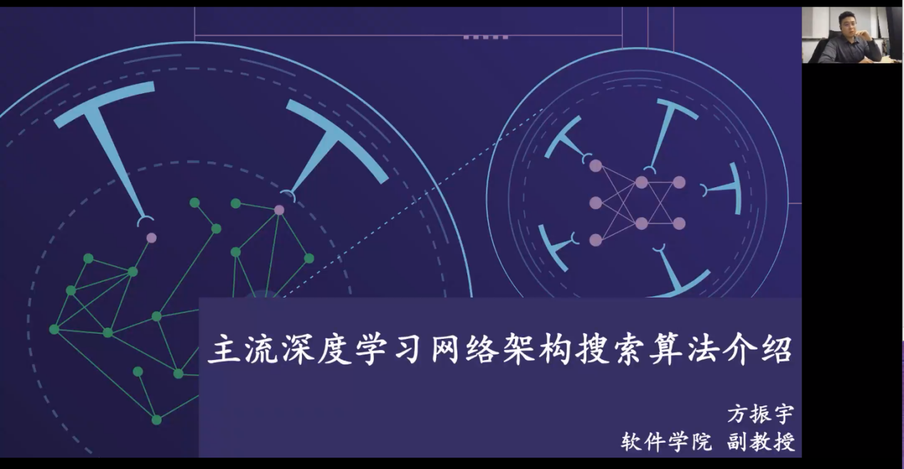 方振宇副教授作为主讲人,为广大师生带来题为《主流深度学习网络架构搜索算法介绍》的讲座。在前期精彩预告下,当天参与人数总计高达380余人,大家都积极加入到本场精彩的学术讲座中,并与方振宇老师现场互动交流。