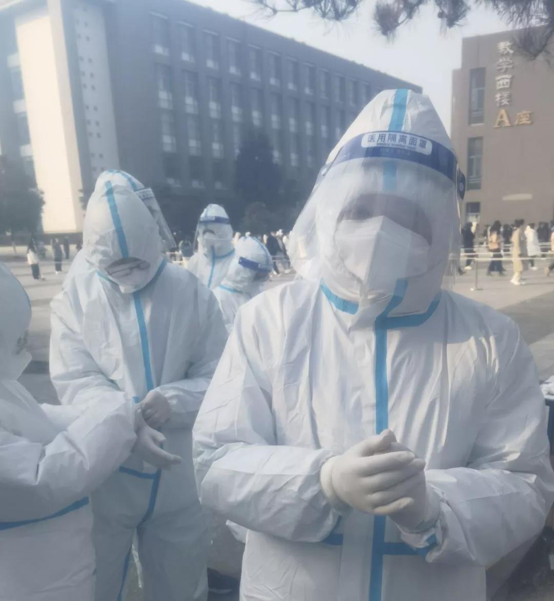 由于本次志愿者都是临时招募的,时间上显得比较仓促,大家在经过简单的培训后,便换上了防护服,与医务人员一同前往教西A进行核酸检测工作。在本次志愿者工作中,由于维护通道秩序的志愿者们尚未装备防护服,致使我的工作被安排了新的工作——维护核酸通道秩序。这次做志愿者让我感受最深的就是穿上防护服、戴上面罩后,因为能见度很小,这样就会使志愿者们感到异常闷热,而穿脱防护服也十分麻烦,虽然只要短短两个小时的志愿者工作经历,但让我深刻体会到医务人员的不易,也希望今后能够再次参加志愿者活动,与和大家共抗疫情,为全校师生保驾护航。