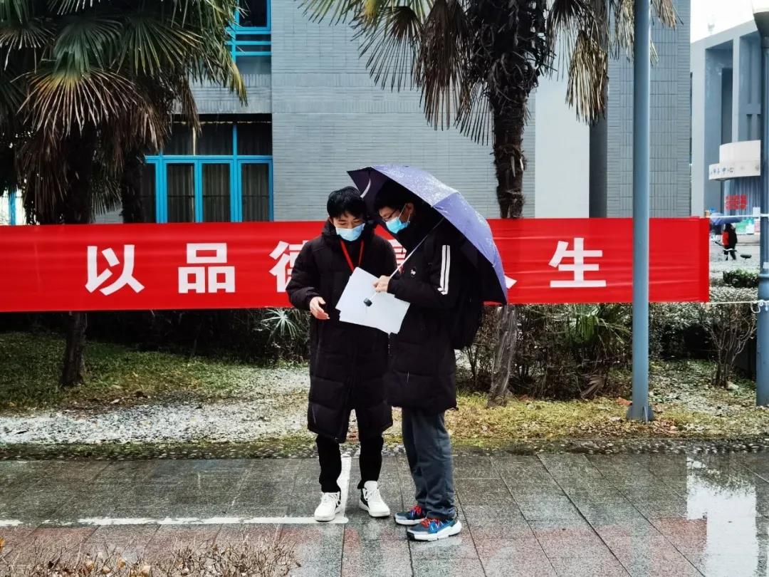今年研究生考试到来的日子,也是今年西安深冬第一场大雪的日子,早晨七点一刻,我们志愿者提前来到考场。本次我负责组织考生进入考场并维持秩序。刚开始时,我们采用本校外校双通道的形式进行排队,但发现随着考生人数的增多,两支队伍的长度出现了明显的差异,为了让考生能够更快更及时的进入考场备考,我们改成混合的形式进行,极大的减少了考生进入考场的时间。