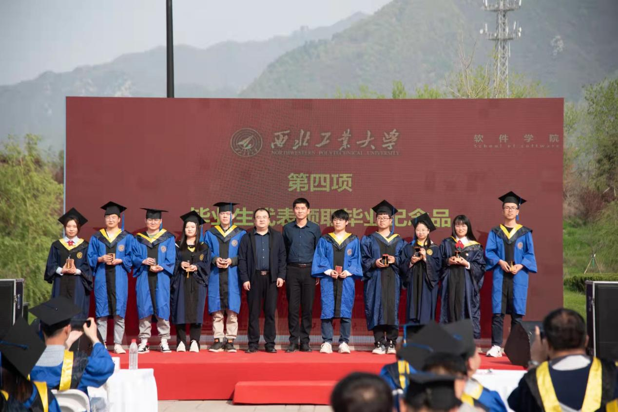 优秀毕业生的表彰决定,郑江滨、李晗分别为优秀毕业生们颁发了奖状和纪念品。同时,李晗希望受表彰的优秀毕业生珍惜荣誉,在今后的学习和工作中继续努力、再创佳绩,为母校争光。紧接着,学院为全体毕业生赠送了具有学院logo的毕业纪念品。