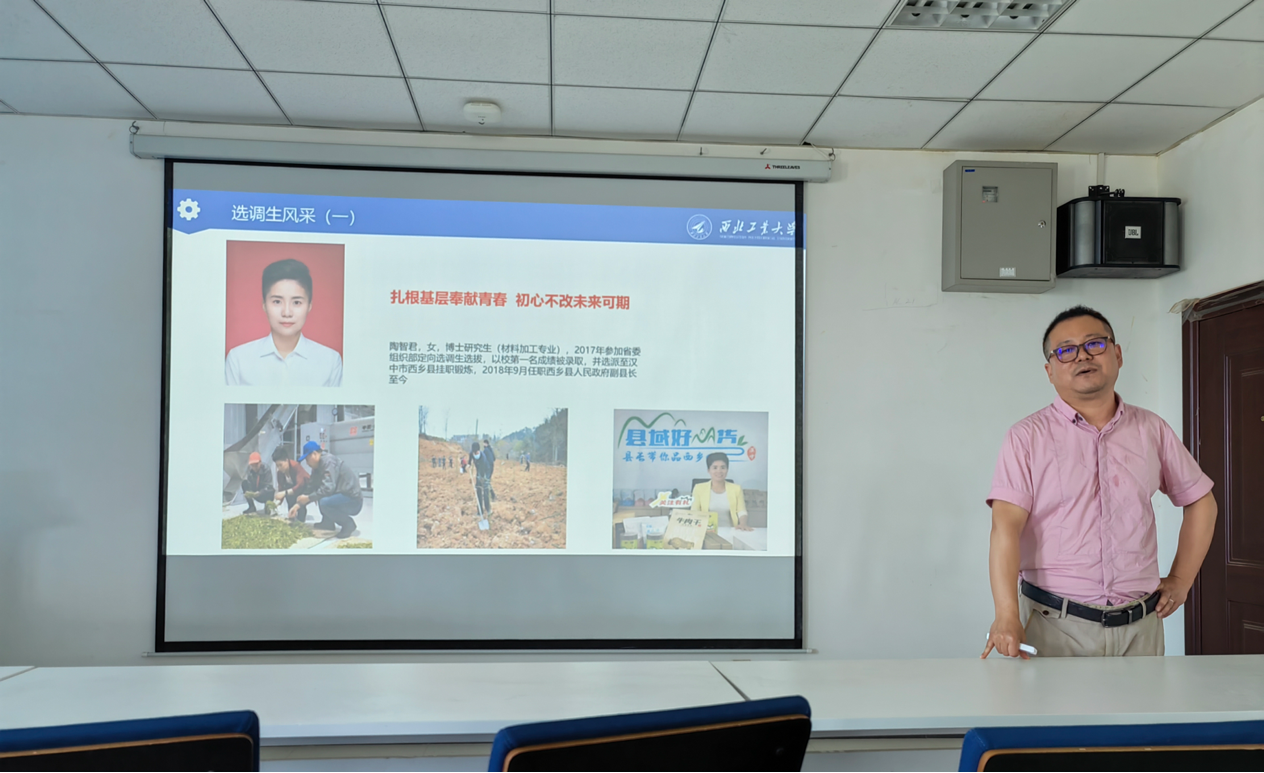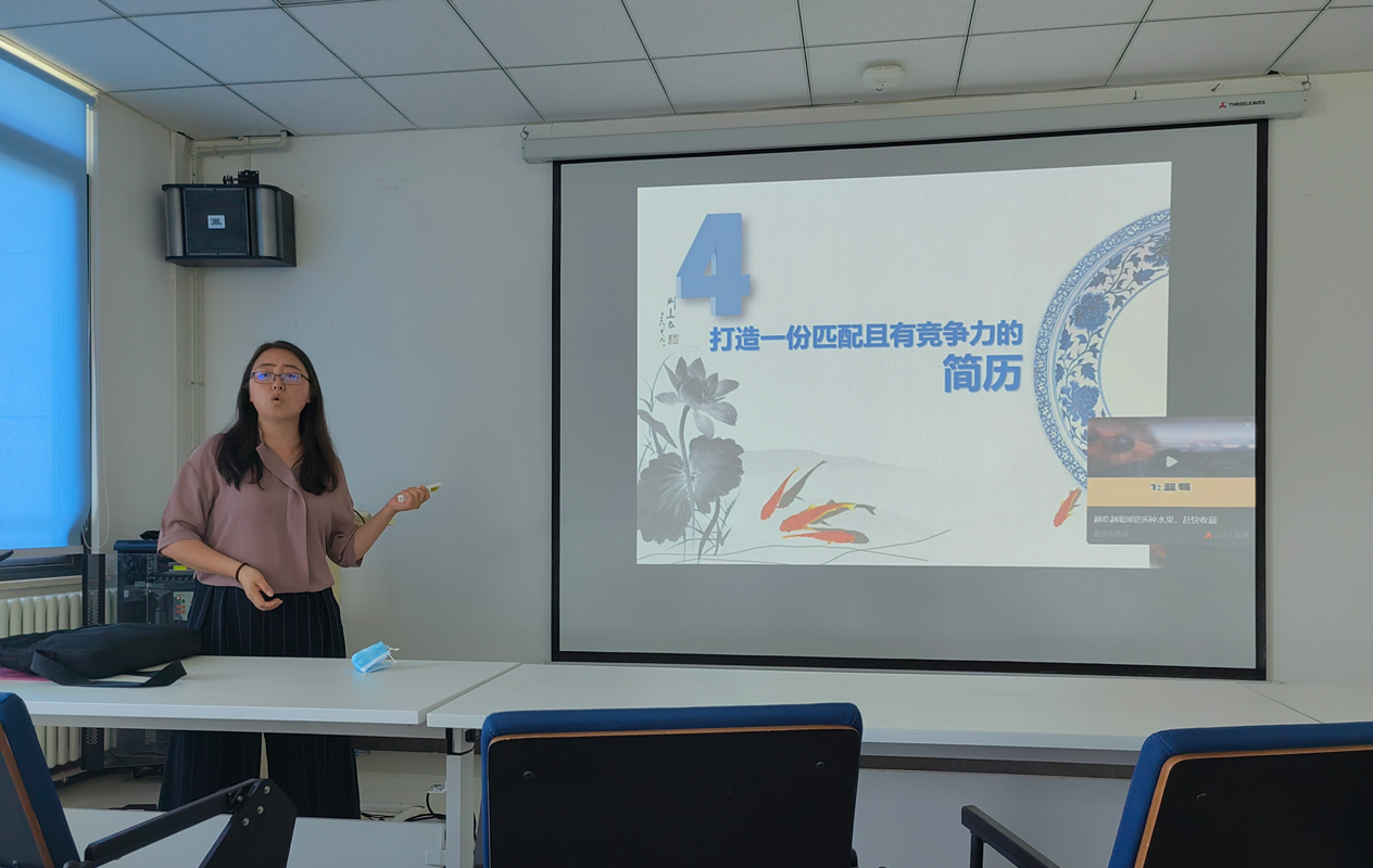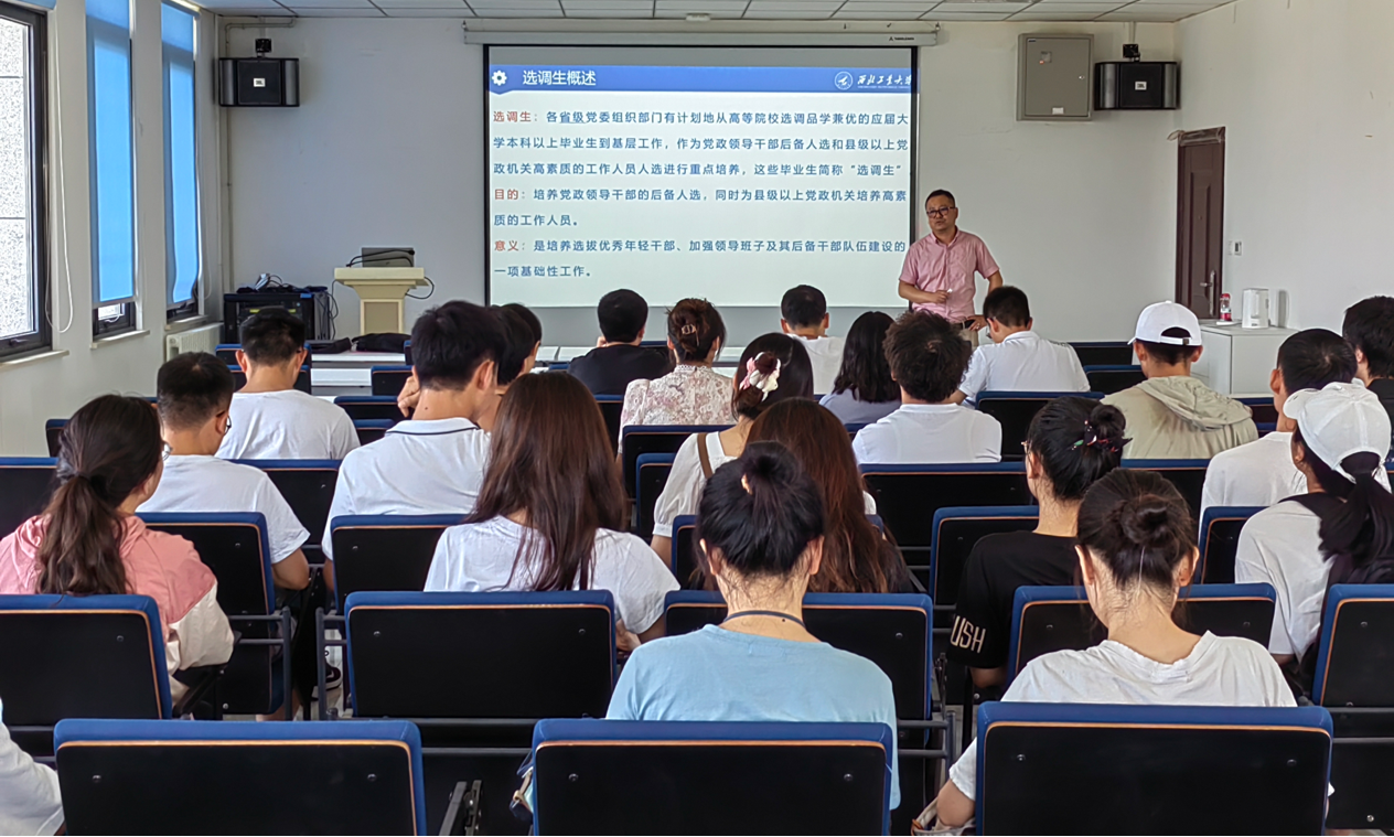 张林木向同学们介绍了培养选调生的目的和意义,鼓励同学们树立远大理想,勇担时代使命,将个人理想融入国家事业。他以陕西选调为例,介绍了选调生报考条件与流程、学校选调生开展情况以及优秀选调生校友风采。此外,他张还介绍了我国新时代的强军目标和培养新时代军队人才的意义,讲解了军官直招和军队文职的报考条件与岗位要求,鼓励同学们筑梦军旅、献身国防。韩利娜介绍了如何打造匹配且有竞争力的简历,从简历的定义、撰写技巧和常见问题三方面进行阐述。她强调,要同学们在简历中突出个人优势,重点介绍与工作岗位相关的项目成果,使简历内容更加丰满。