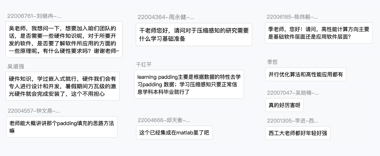 的部分导师团队向学员们介绍了其主要研究方向、承担的重要科研项目以及取得的各类丰硕的科研学术成果。本次活动为学员们搭建了良好的沟通交流平台,创造了初探各研究领域的机会,既开拓了学员们的视野,又激发了学员们对科研工作的浓厚兴趣。