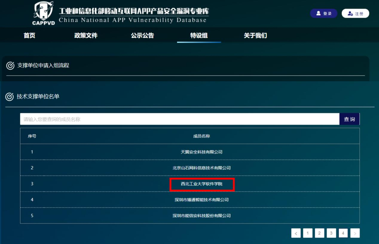凭借突出的移动互联网产品人才队伍、丰富的研究基础、前沿的APP技术开发能力以及前期对CAPPVD高效支撑能力等优势,顺利通过材料审核、答辩评审,成功入选工信部CAPPVD漏洞库技术支撑单位,一同入选的还有百度、腾讯、小米、启明星辰等知名互联网企业。