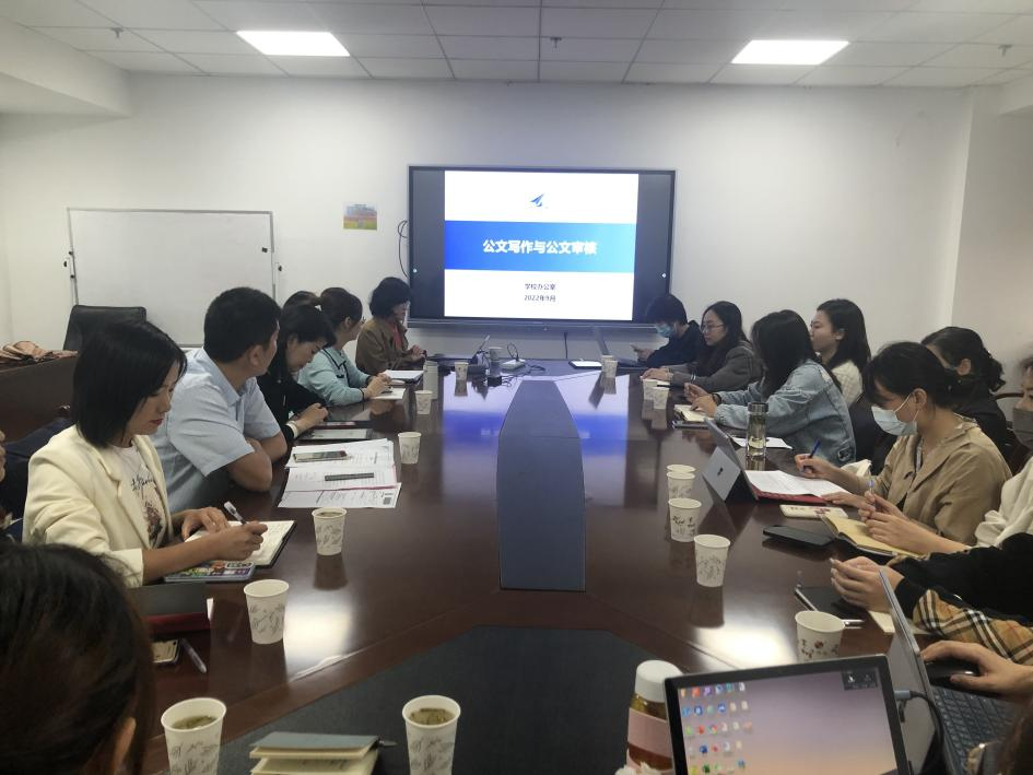 尹红菊作了题为《公文写作与公文审核》的分享,她结合自身多年实践经验,从公文定义及种类、学校常用公文撰写、审核要求与职责、审核八步法四个方面详细讲解,深入浅出得将晦涩的公文定义和结构进行阐释,并结合具体案例向大家介绍了公文写作中常见的问题及错误。尹老师提到,公文写作需理清思维逻辑,文字要精炼、表达要准确,这要求行政管理人员要培养行文规则、表意准确的书写能力。