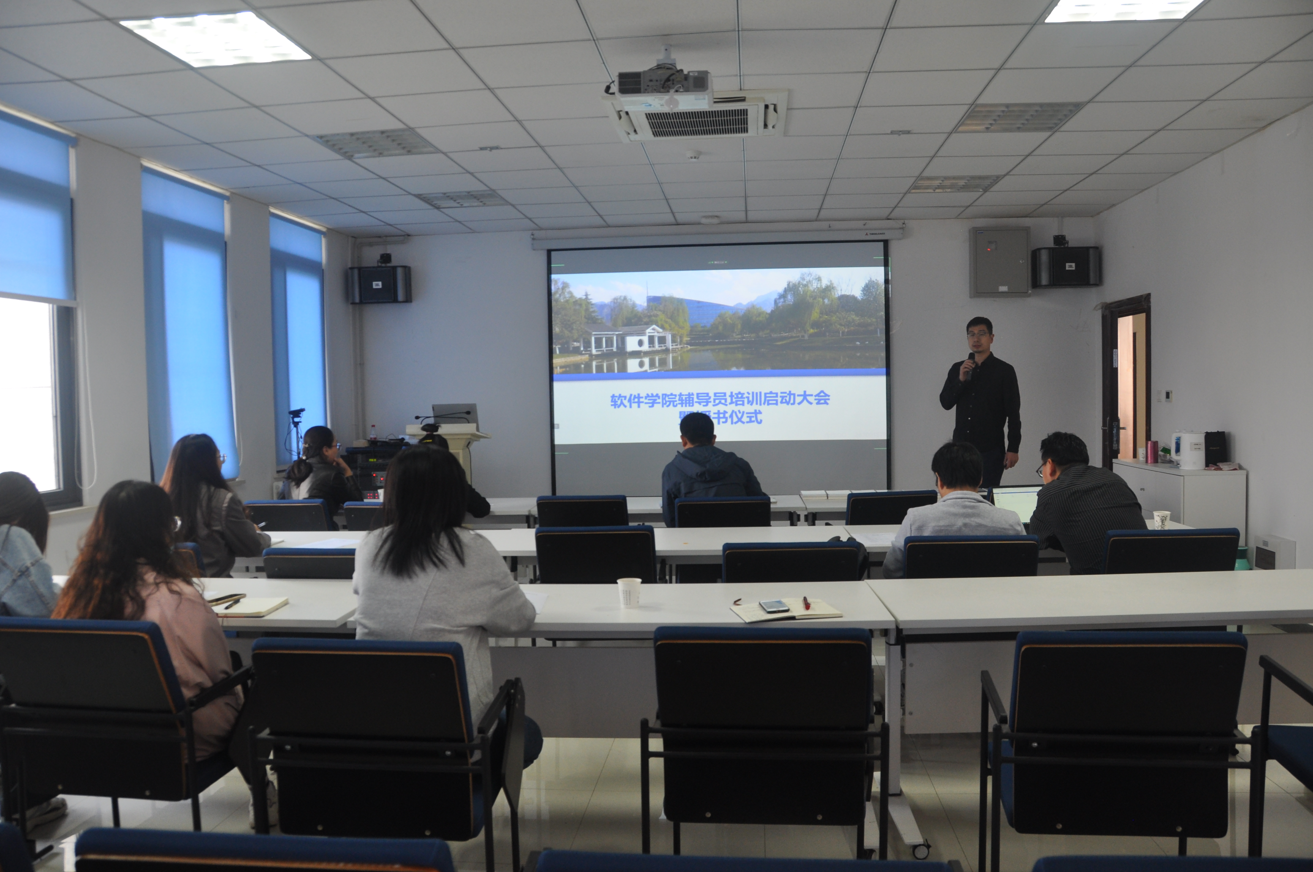 在启翔楼401报告厅召开辅导员培训启动大会暨授书仪式。党委副书记(主持工作)李晗,党委副书记张龙,专职辅导员张记国、高利鹏、吴逾强(线上),以及学生工作助理、兼职辅导员参加会议,特邀学校办公室校务工作科戴卓、少妇做爱