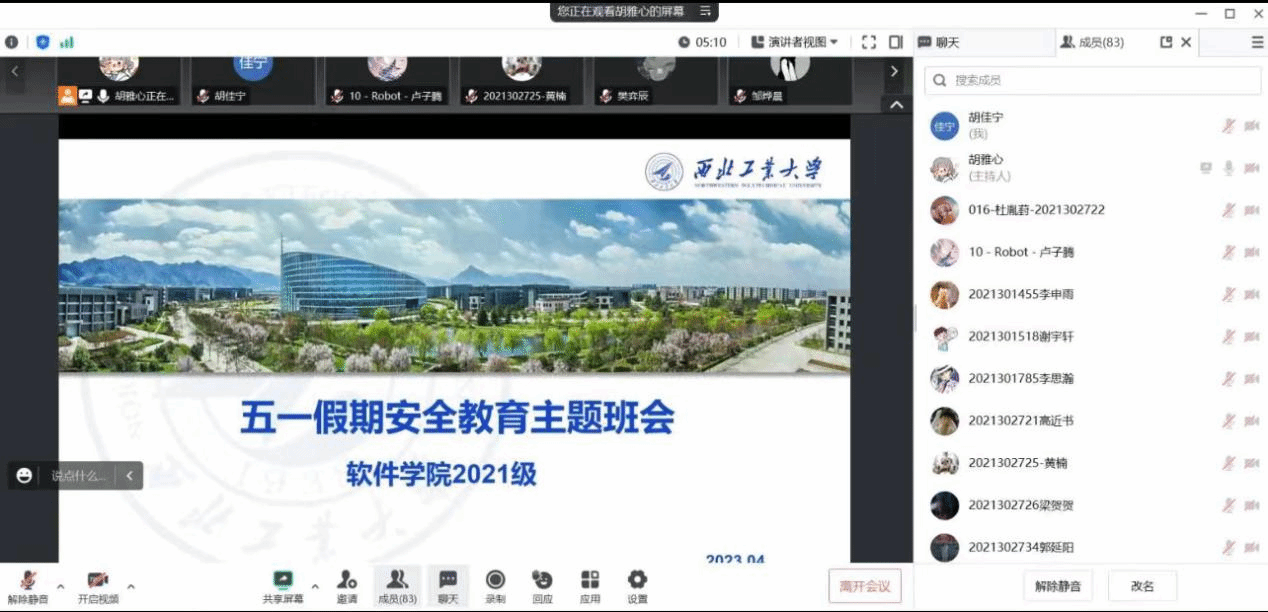 图五 2021级本科生组织线上安全教育大班会