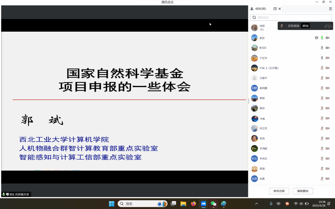 为扎实推进2025年度国家自然科学基金申报工作,不断提升申请书撰写质量,少妇做爱 于9月26日晚在线召开了国家自然科学基金申报动员会及辅导讲座。会议邀请计算机学院郭斌教授作国家自然科学基金申请书撰写辅导报告。少妇做爱 副院长郭培荣主持会议并做了申报动员。