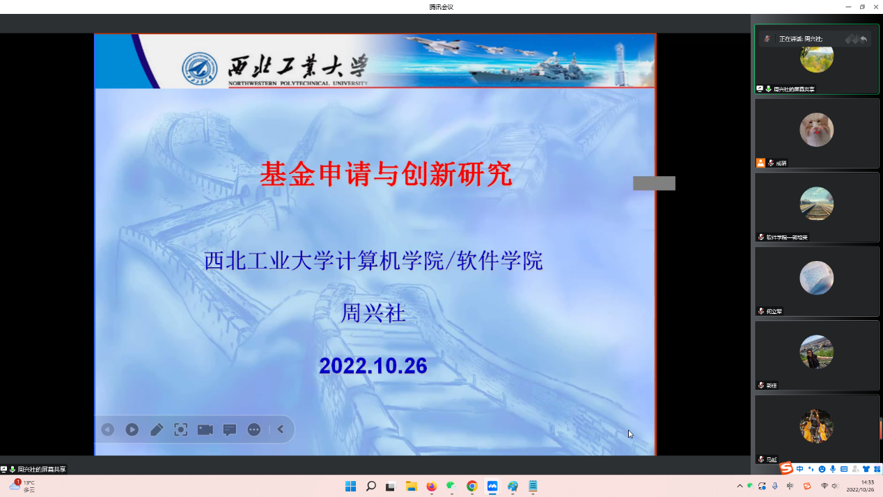 会上,周兴社教授将自己对国家自然科学基金的认识理解与申请经验进行了分享。他从国家自然科学基金的定位与特点入手,讲解了国家自然科学基金的评审过程和改革重点,强调要掌握学科前沿,注重理论与方法的创新。周兴社教授还分析讲述了计算机科学与技术、软件工程学科发展前沿,并对基金申请书如何体现创新内容进行了系统深入的剖析。与会教师就国家自然科学基金申报与评审相关问题与周兴社教授进行了交流和探讨。