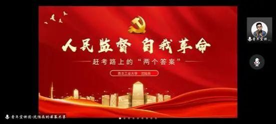 随后,青年宣讲团成员沈陆辰围绕“新时代赶考路上的‘两个答案’”主题,讨论如何摆脱先兴后衰的历史周期律,提出了“人民监督,自我革命”两个答案。首先,沈陆辰分析毛泽东同志在革命之前谈论的“我们已经找到新路,我们能跳出这周期律,这条新路,就是民主”说明民主(即人民监督)是我们跳出历史周期律的答案之一,并以人民代表大会为例分享我们党一直以来进行的民主监督实践。随后,沈陆辰指出四大考验、四大危险是我们党一直都需要面对的问题,并具体讲解了腐败的危害:腐败会严重侵蚀国家和人民的基本利益、危害国家政治安全、破坏党的声誉、影响社会稳定,并最终导致社会退化。沈陆辰还以电视剧和纪录片为例表示反腐是我们党、我们国家要一直进行的重大斗争,同时也是我们党进行自我革命的具体体现。最后,他提出“相伴相随,相辅相成”“同根同源,内在一致”“初心不改,使命在肩”,系统地总结了两个答案的关联:“人民监督是基础,自我革命的关键”。