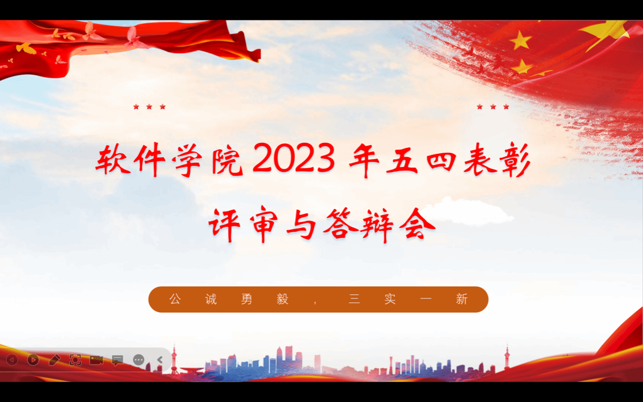 团委书记张记国、团委副书记胡雅心以及各年级专职辅导员、兼职辅导员出席会议。本次会议由组织部负责人张弘毅主持,参与答辩的有优秀共青团干部6人,先进团支部8个,五四红旗标兵2人,五四红旗团支部1个。会议共分为五个环节,于线上线下同步进行。