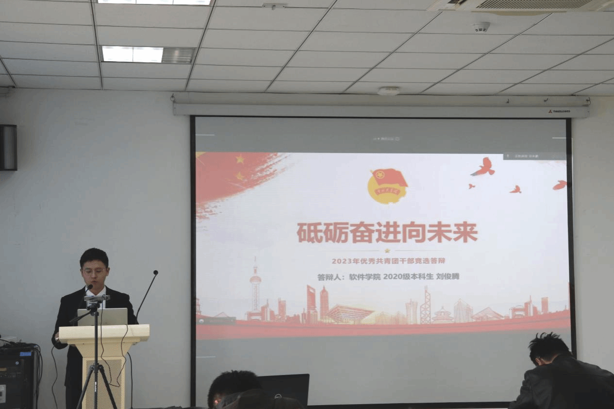 (刘俊腾同学进行优秀团干部答辩)