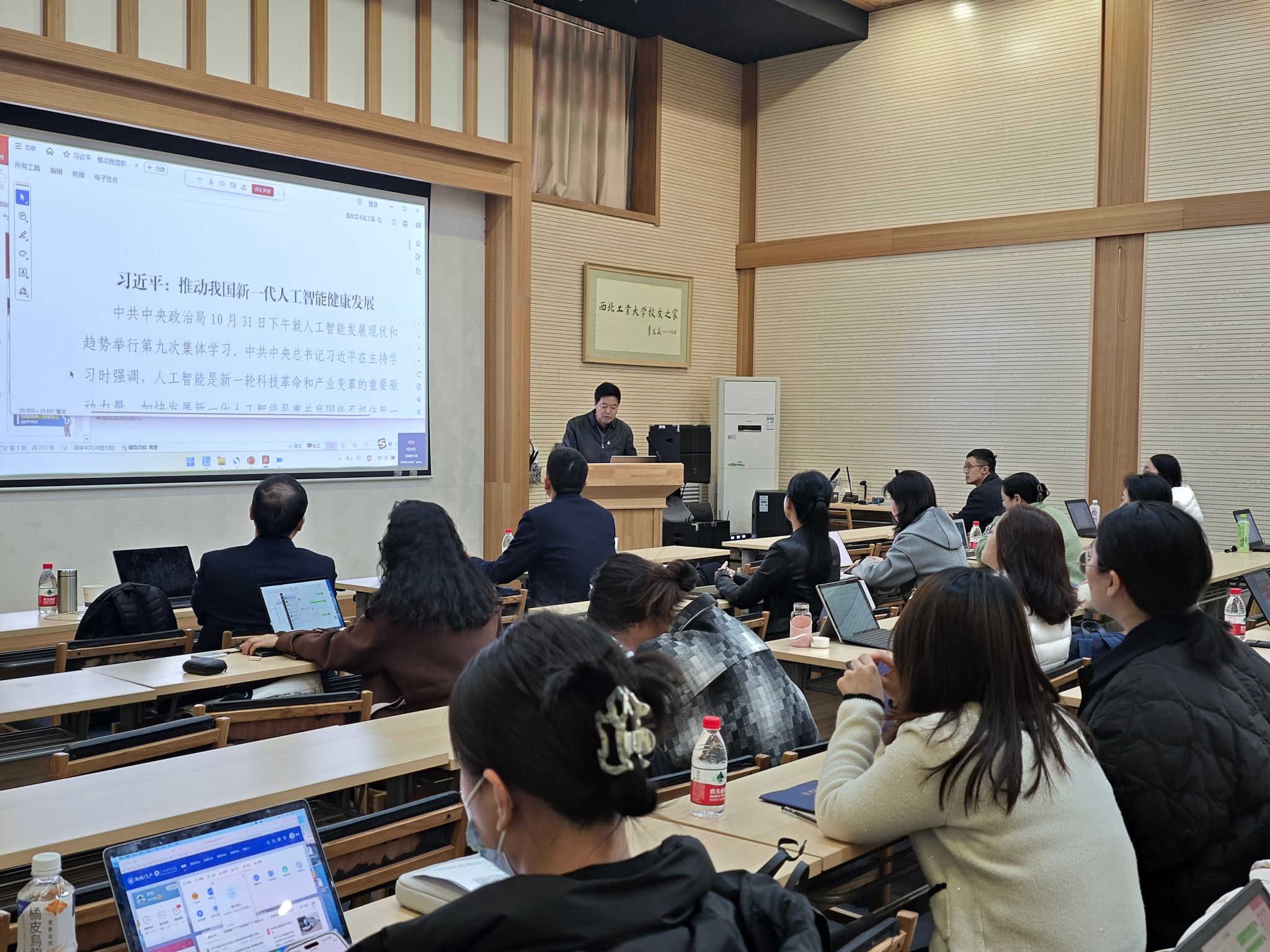 牛振喜领学了习近平总书记《推动我国新一代人工智能健康发展》重要讲话精神。他指出,人工智能作为新一轮科技革命和产业变革的重要驱动力量,正在深刻改变人类社会生活。我们要立足学校“双一流”建设,充分发挥学科优势,推动人工智能与科研工作深度融合,为学校高质量发展注入新动能。