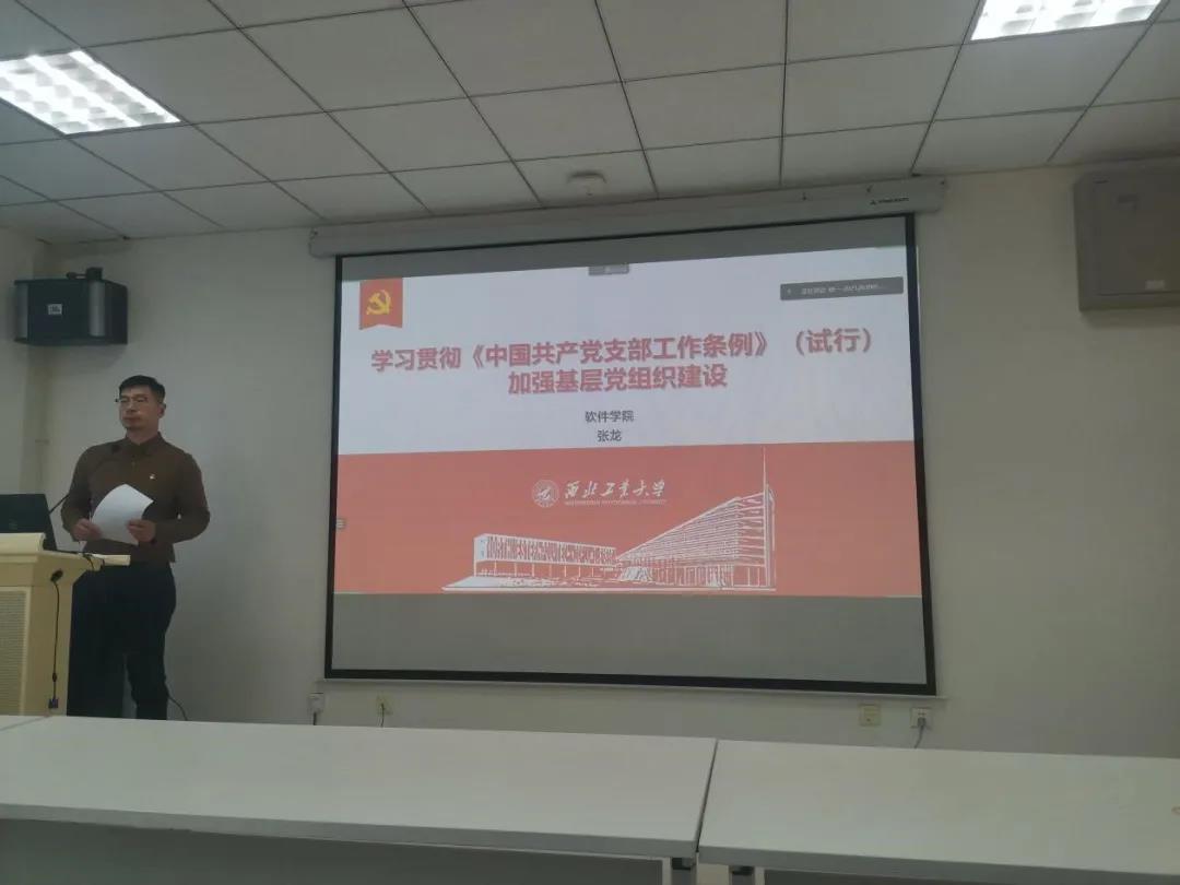 党委副书记张龙担任主讲,给全体支部委员带来《学习贯彻<中国共产党支部工作条例>(试行)——加强基层党组织建设》的专题培训。