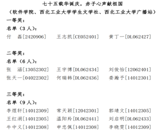颁奖仪式:在颁奖仪式上,我们见证了一幕幕感人至深的场景。获奖者们手持奖品,脸上洋溢着自豪和喜悦的笑容,他们的眼神中闪烁着对未来的憧憬和对成功的渴望。这一刻,他们不仅是获奖者,更是西工大精神的传承者和实践者。合影留念随着快门的一次次按下,我们记录下了这些珍贵的瞬间。获奖者的笑容如同春日的阳光,温暖而明媚。这些合影不仅是个人成就的纪念,更是对西工大爱国青年的赞颂。