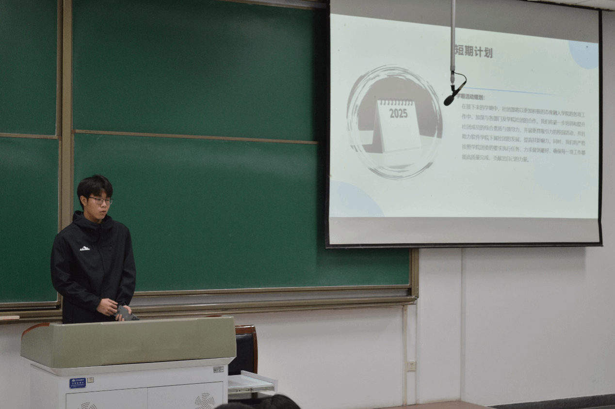 大会伊始,主席团成员张弘毅发言。他首先对全体参会人员的辛勤付出表示感谢,本次全员大会的召开,旨在总结过去一学期的工作经验,明确未来工作方向,进一步提升学生组织的凝聚力和战斗力。张弘毅同学带领大家学习了《习近平著作选读》第二卷中的《培养德智体美劳全面发展的社会主义建设者和接班人》的相关内容,通过此次学习,张弘毅同学讲到,作为新时代的软件青年,大家要勇于担当、奋发有为,不断提升自身素质和能力,积极投身于校园活动和社会实践之中,为学院和社会的发展贡献青春力量。