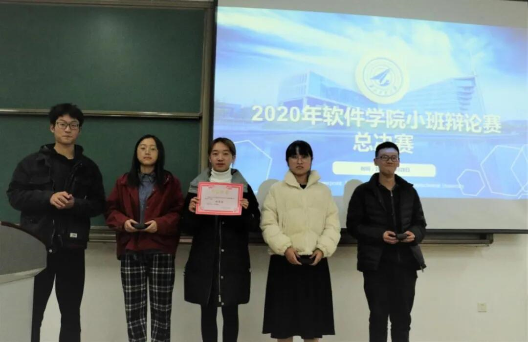 来到决赛,简单的开场主持过后,就是遏制不住的暗流涌动,首先由四十一班与三十八班点燃火线,大战一触即发!“清醒到极致的人更幸福还是更不幸?”,两班为我们带来了一场视听盛宴,引例、寻据、质询,双方你来我往,比赛异常激烈。短暂休息后,第二场三十八班继续坐庄,四十班前来挑战,双方对于艺术商品化的利弊进行了思辩,张扬却不失风度,流利又句句经典。最后是四十班和四十一班的究极决战,现如今短视频平台红极一时,而这对大学生学习生活是好是坏,两班为我们带来了让人拍案叫绝的辩论。经过三轮精彩的比拼,四十一班与三十八班虽准备充分却挡不住四十班四位辩手的出色发挥,与冠军失之交臂,由四十班拔得头筹,荣获本次小班辩论赛总冠军!