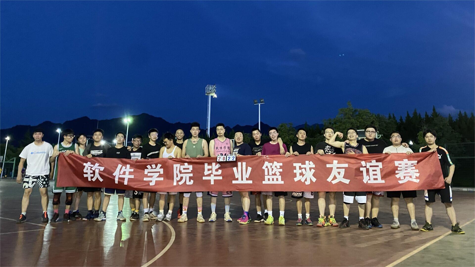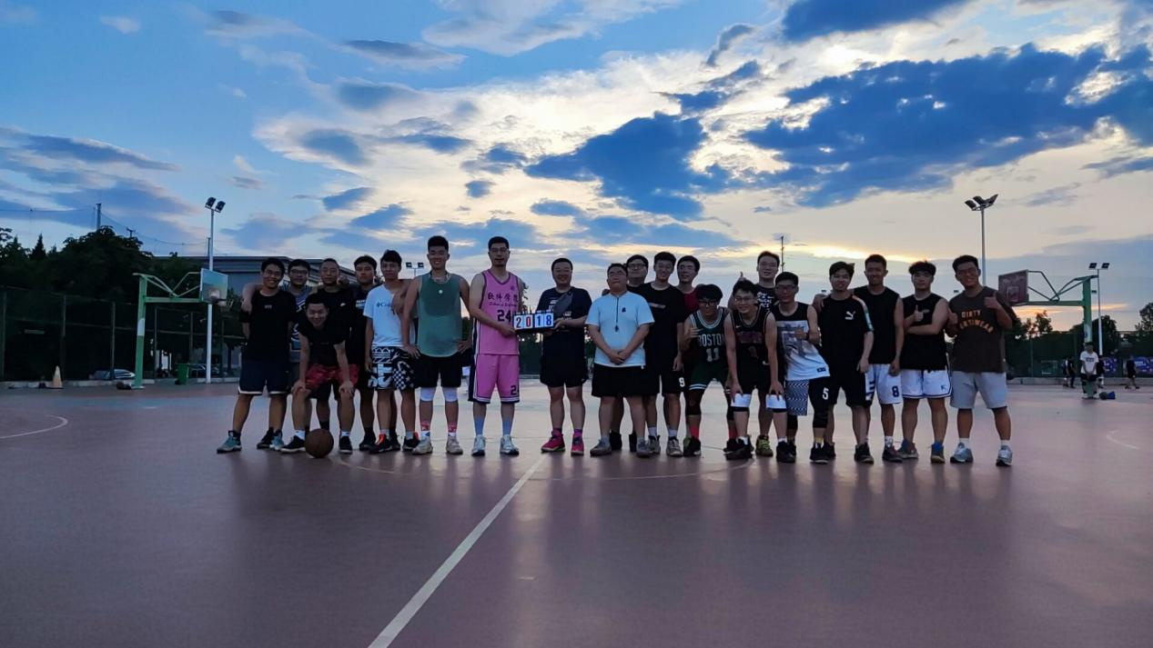 篮球场上,大家挥洒汗水,你追我赶,双方运动员都使出浑身解数,展开激烈争夺,比分交替上升,面对拦截,篮球选手们冷静应对,速攻快推,轻松化解了对方的攻势。比赛结束后,选手们手捧象征“2022年毕业快乐”的计分板在夕阳下合影留念。