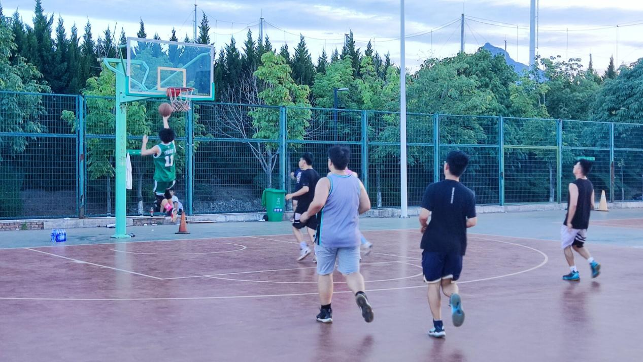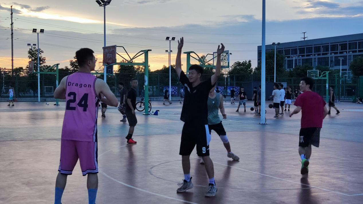 与此同时,篮球场上的比赛也同样精彩。赛前准备时,参加比赛的选手们个个摩拳擦掌,跃跃欲试。