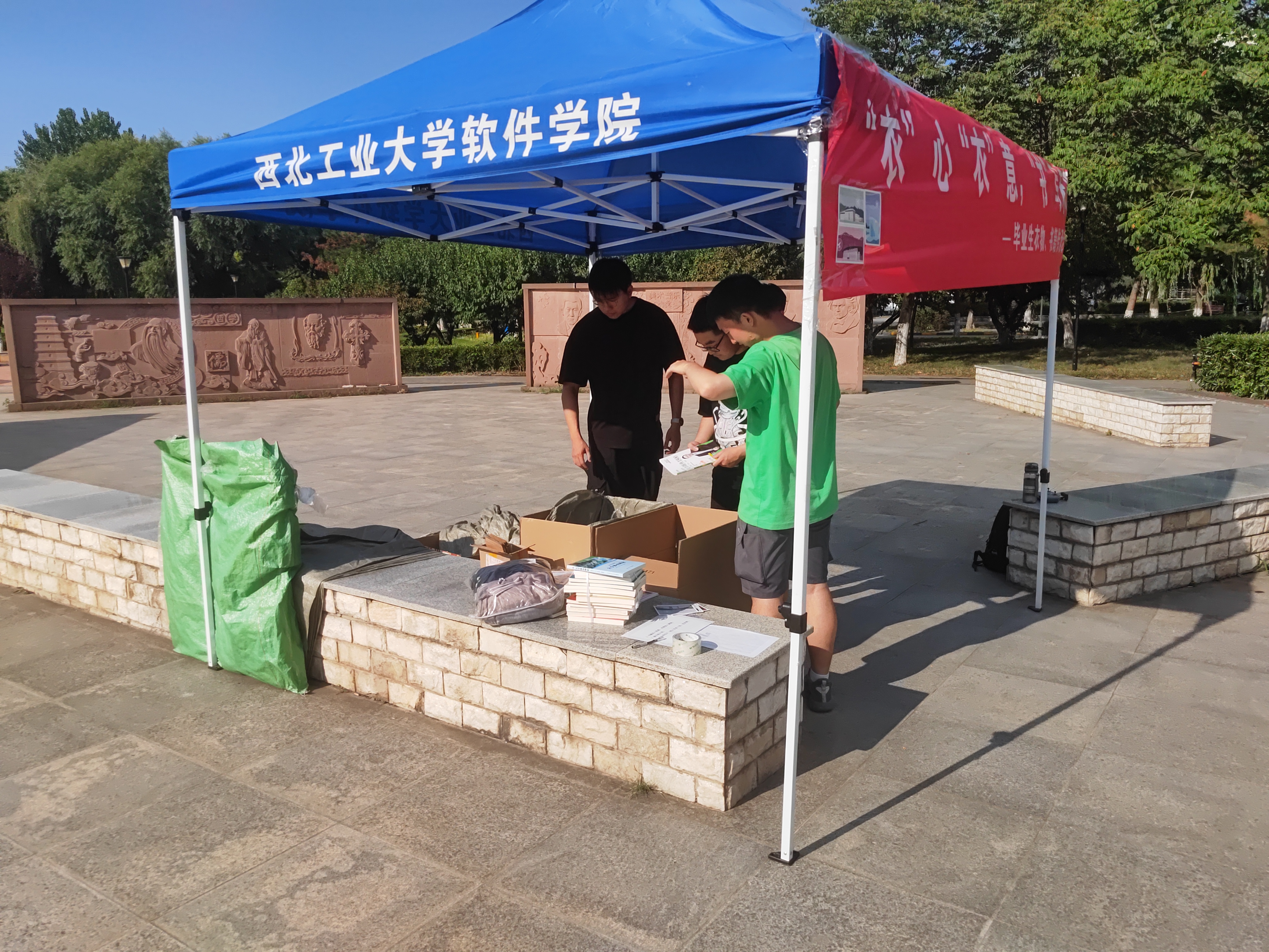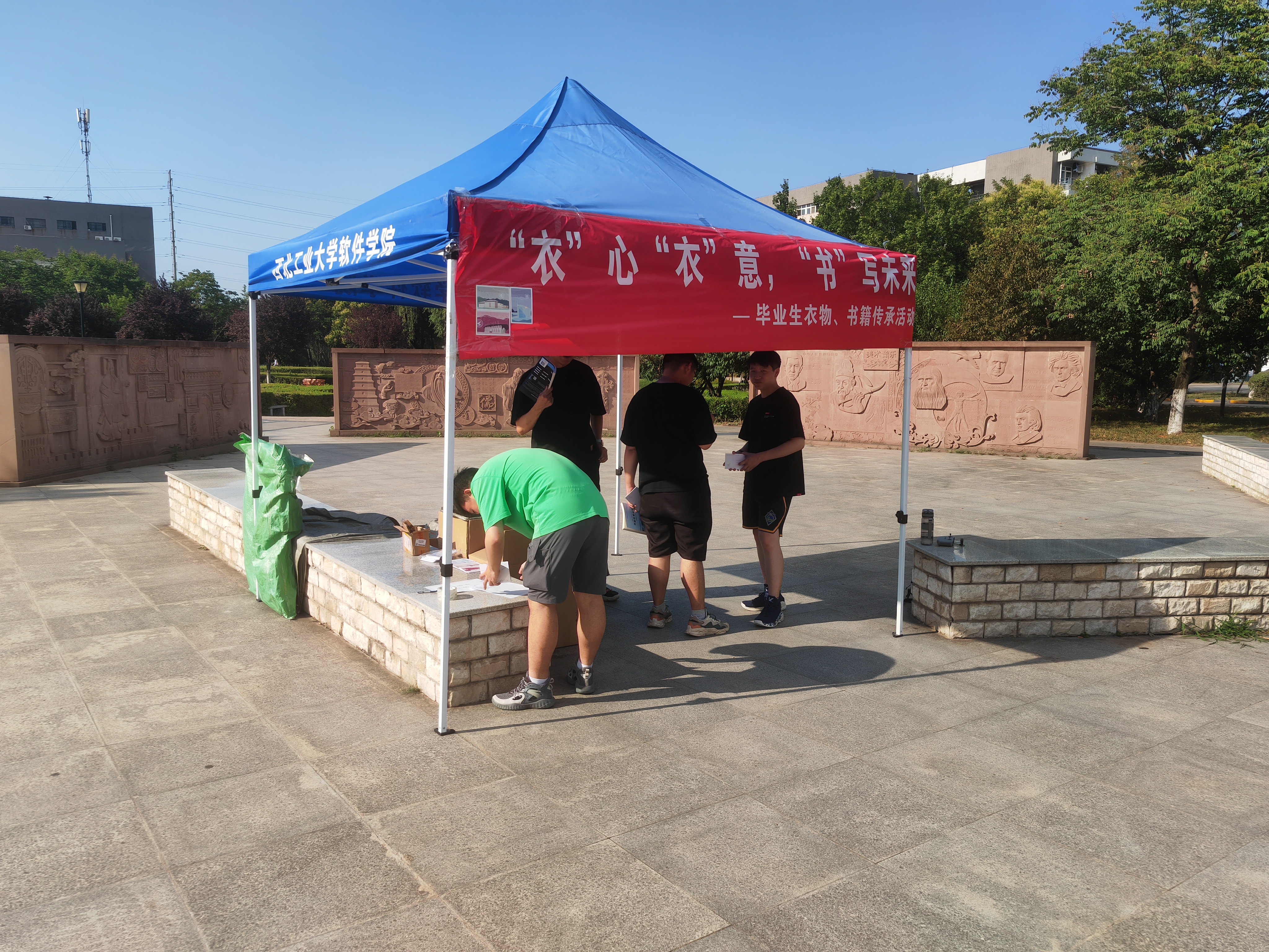 在星天苑静悟园广场开展了 “衣”心“衣”意,“书”写未来——毕业生衣物、书籍传承活动,呼吁学校本科毕业生将书籍、衣物等旧物品捐赠给有需要的人,实现资源共享、智慧传承,让旧物品重焕新生。