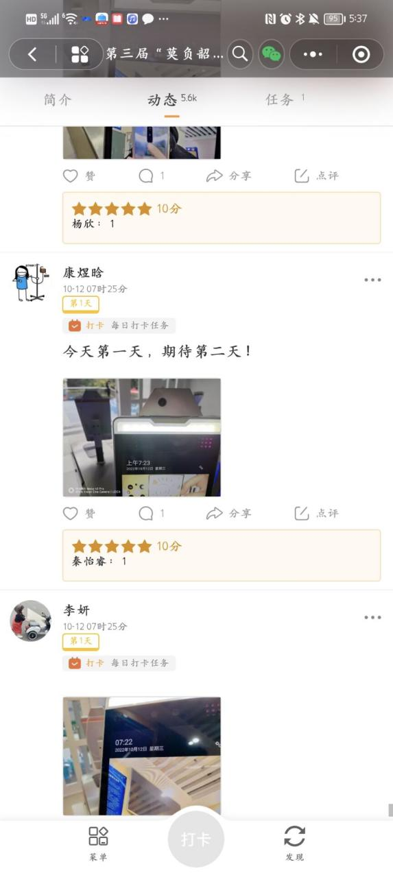 礼仪队共同承办了为期十四天的第三届“莫负韶光”早起打卡大赛。本次活动于10月12号启动,采用线上打卡与线下打卡相结合的形式开展,参与人数首次突破600人。