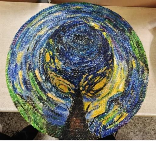 很开心参加了“帽”美如“画”草帽绘制大赛,第一次体验在草帽上进行绘画,感觉非常新颖有趣。在“广袤”的大草帽上,随心所欲、一笔一笔地融进五彩斑斓的世界,整个过程简直不要太治愈!希望以后还会有机会参加这样的活动,在草帽上创作一个自己的小世界。