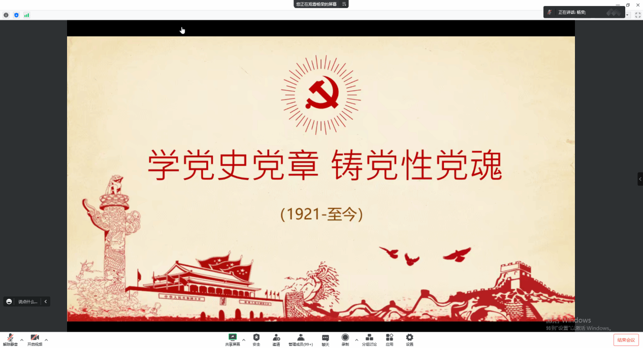 杨荣主讲内容是中国共产党党史和《中国共产党章程》。杨荣生动具体地讲解了党史的发展脉络,并指出学习党史可以从历史中汲取智慧和力量,是加强党的思想理论建设的重要任务,也是继承党的成功经验和优良传统的需要。随后杨荣对历届《中国共产党章程》进行了回顾并讲解了党章的基本知识。