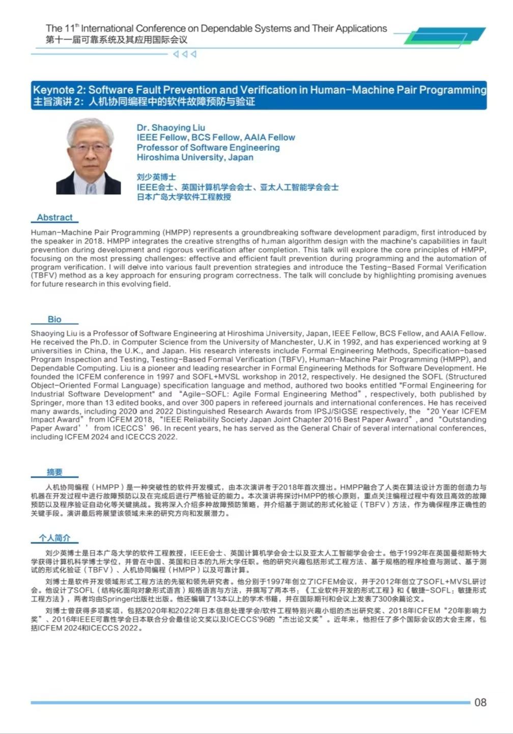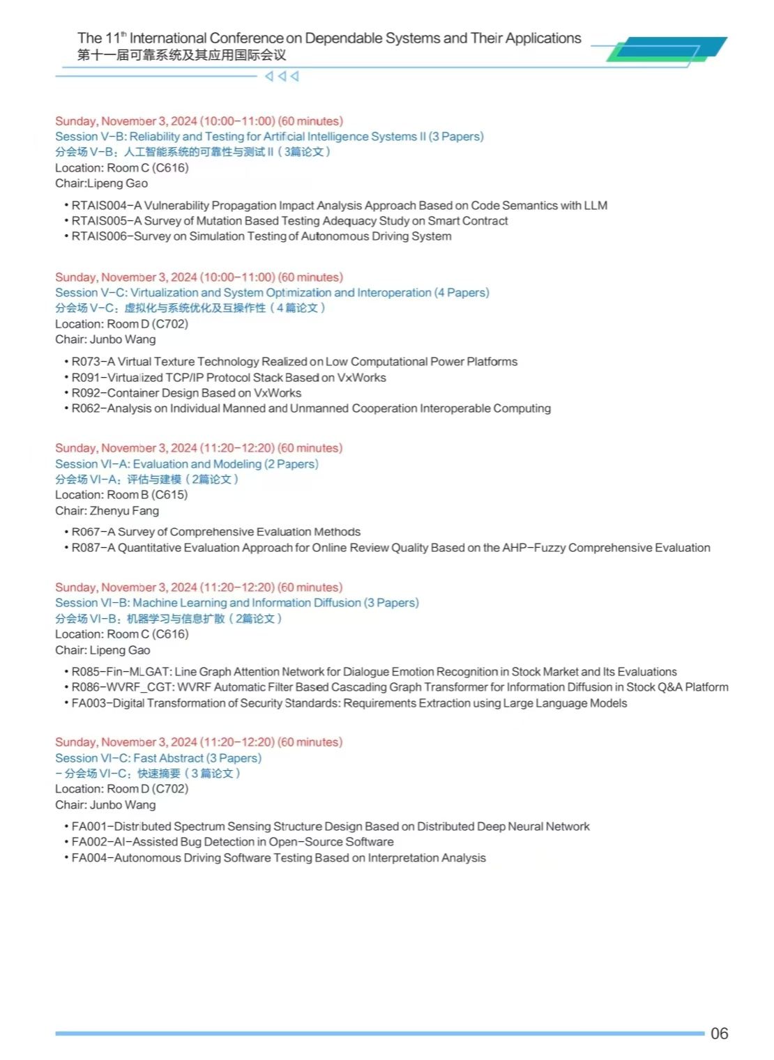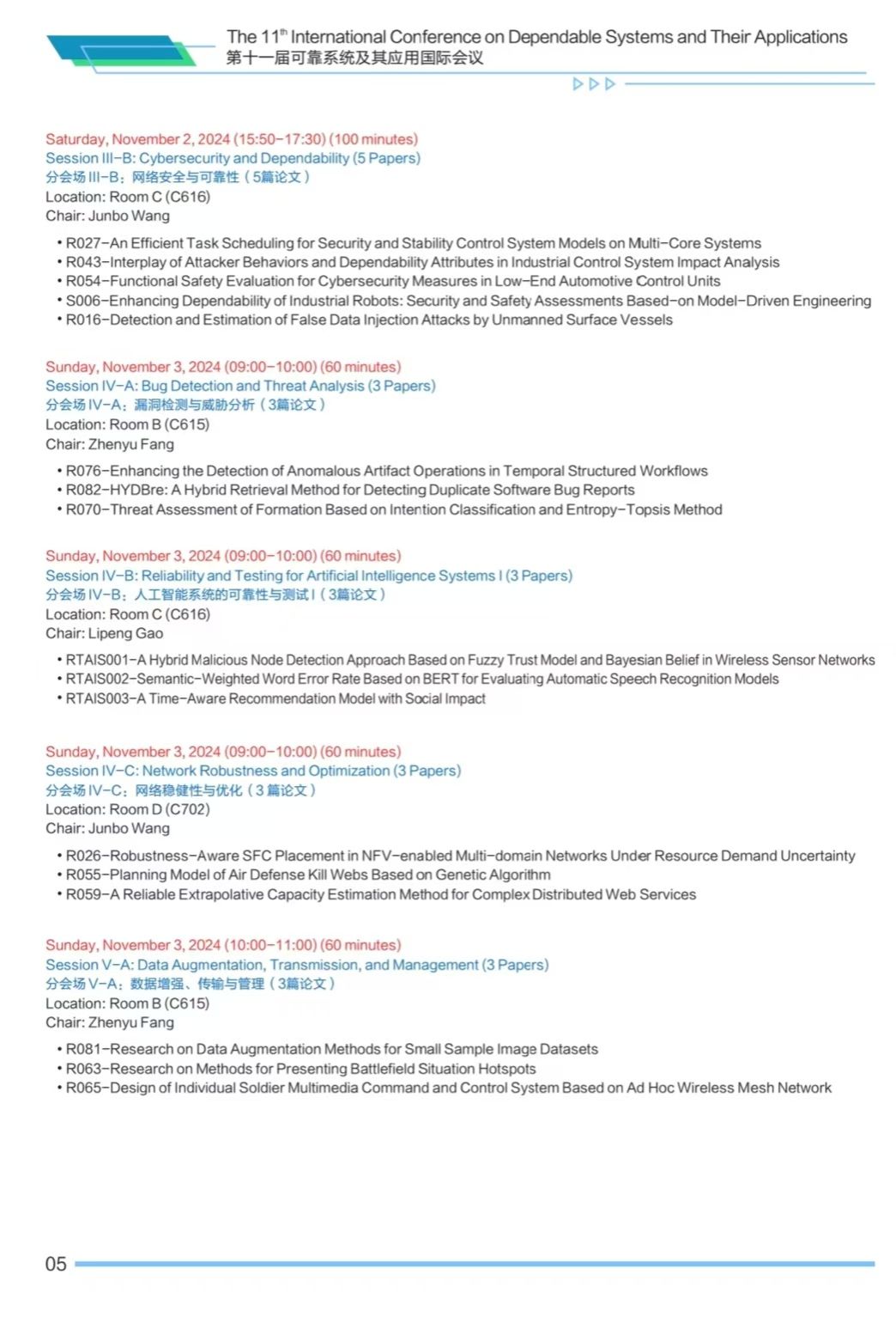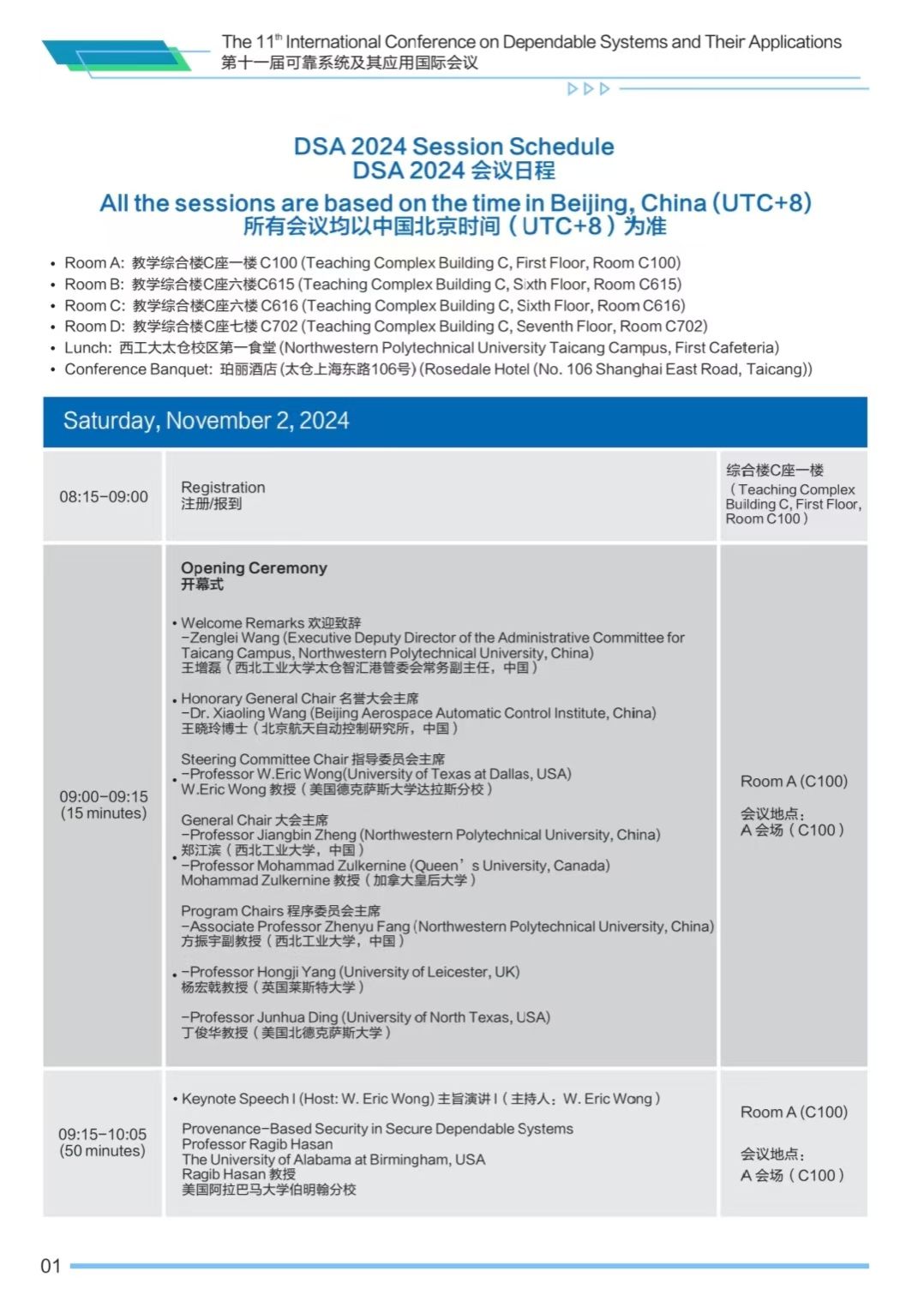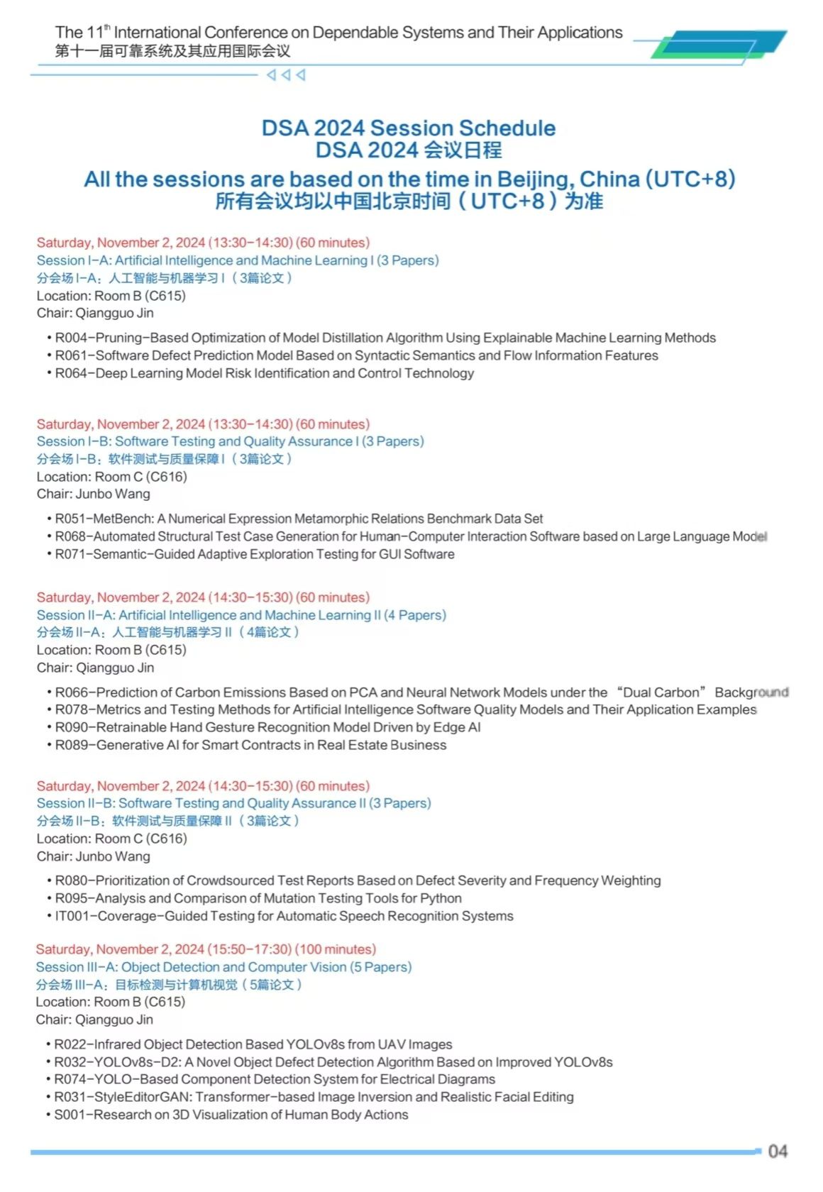 第十一届可靠系统及其应用国际会议(DSA 2024)将于2024年11月2日-3日在少妇做爱 太仓智汇港举办,会议安排如下,欢迎各位专家学者参会交流。