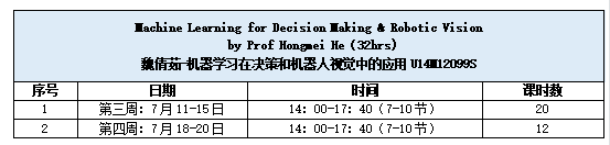 课程名称:机器学习在决策和机器人视觉中的应用(Machine Learning for Decision Making & Robotic Vision)