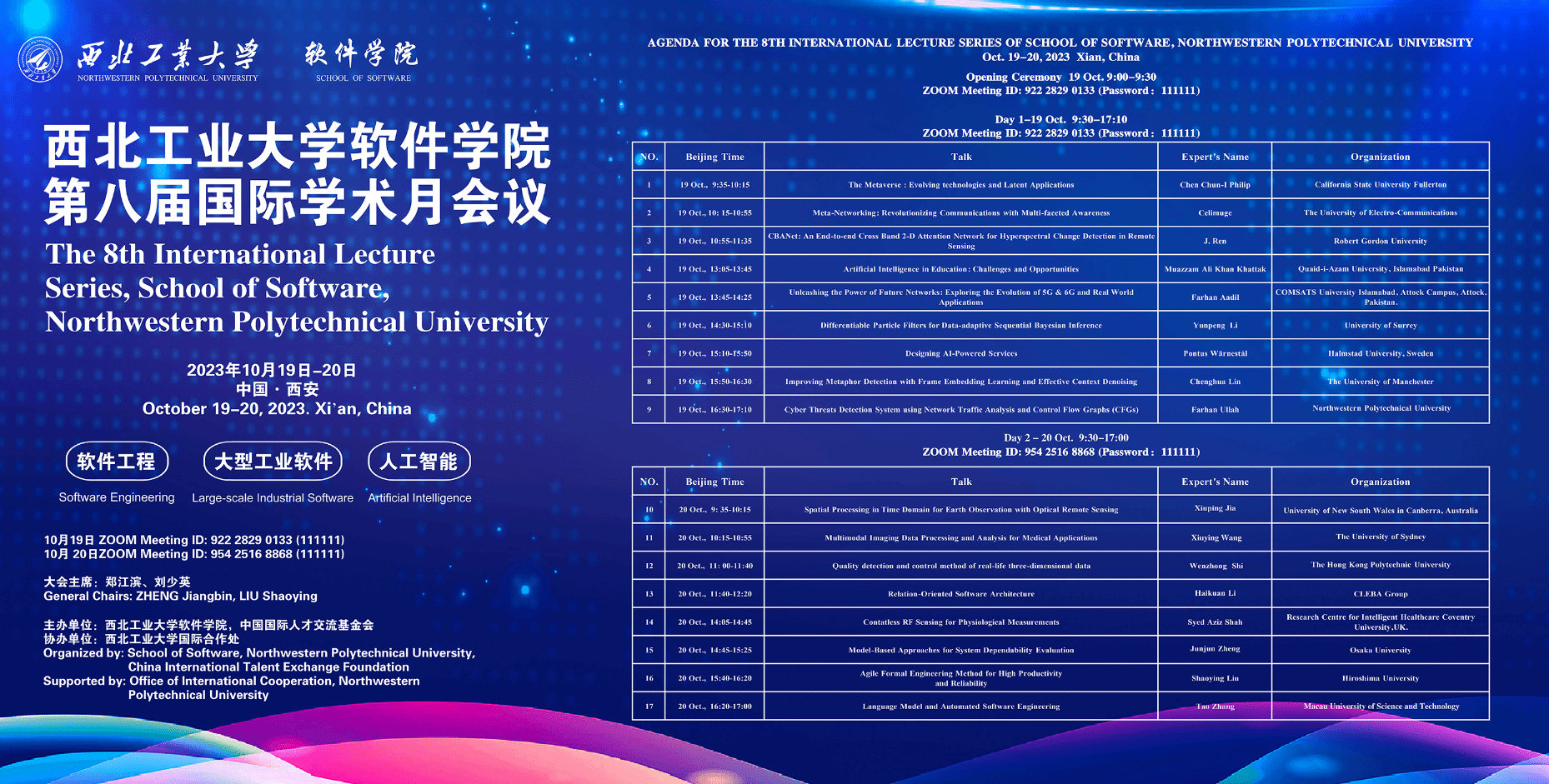 第八届国际学术月会议”,将于2023年10月19日上午开幕,为期两天,会议主题为:软件工程、大型工业软件、人工智能。