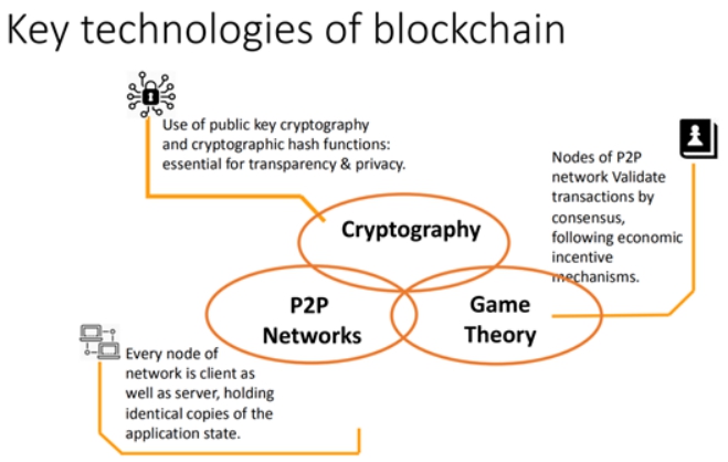 简单说来:区块链技术最早也是最核心的体现是比特币,比特币是中本聪发明的P2P形式的数字货币,体现的是一种去中心化的支付系统。它需要算法加密码学来实现,也衍生出了第二代区块链以太坊。