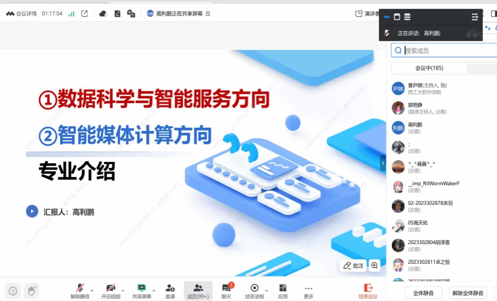 在线召开面向2023级本科生的专业方向宣讲会。会议聚焦软件工程专业的四个方向——互联网系统开发、数据科学与智能服务、智能媒体计算及大型工业软件展开深入讲解。专业方向负责人李伟刚、张仕进、高利鹏出席并作专题讲解,190余名本科生参会。会议由本科教学秘书郭艳静主持。